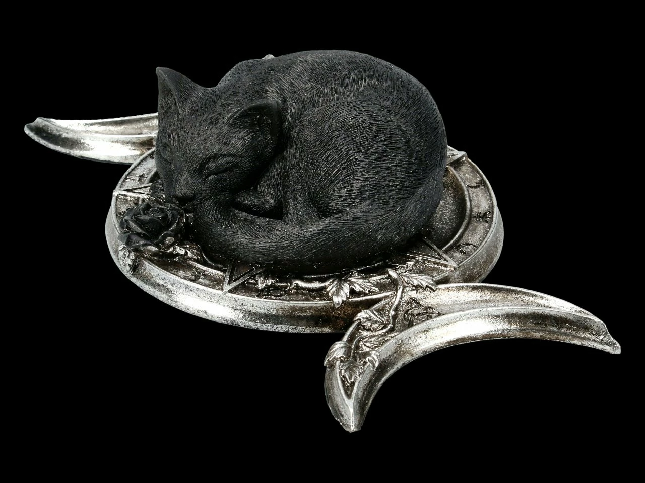 Genau in die Mitte eines edlen silberfarbenen Dreifach-Mondes hat sich die kleine schwarze Hexenkatze friedlich zum Schlafen hingelegt. Diese niedliche Wicca Katze aus der The Vault Collection von Alchemy ist sehr detailreich aus liebevoll handbemaltem Kunststein (Polyresin) gefertigt. Die niedliche Katzenfigur Witches Familiar ist 5 cm hoch, 20 cm breit und 11,5 cm tief. Am liebsten steht sie da, wo sie auch sofort gesehen wird und ist auch das perfekte Geschenk für jeden Hexen- oder auch Katzenhaushalt.