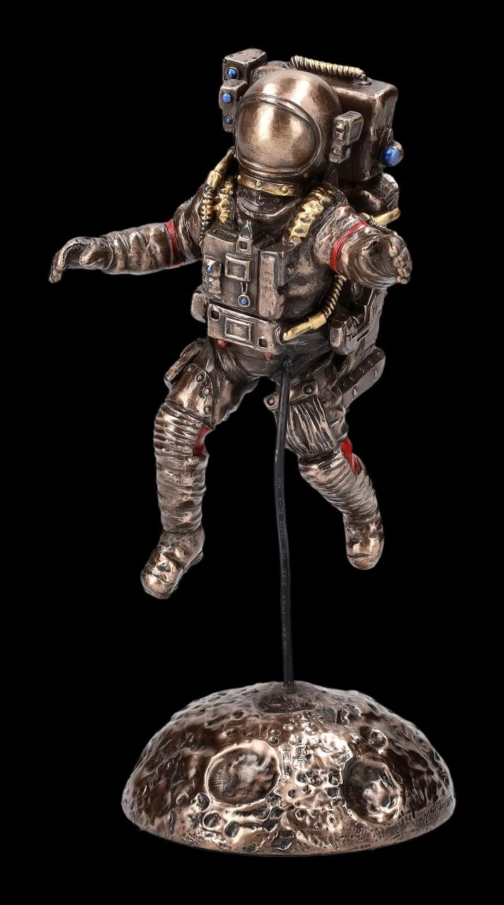 Ob Neil Armstrong bei der Mondlandung 1969 den berühmten Satz: ‚Ein kleiner Schritt für einen Menschen – ein großer Sprung für die Menschheit‘ so gesagt hatte oder nicht, ist heute völlig egal. Es war ein Riesenschritt und seit einiger Zeit wird von allen möglichen Nationen geplant, dass er seine Fortsetzung finden soll. Die 16,5 cm hohe, 8 cm breite und 7 cm tiefe Astronauten Figur auf dem Mond stammt aus der Studio Collection von Veronese. Sie ist ein fantastisches Geschenk für jeden Fan der ersten Mondlandung und auch der Weltraumfahrt allgemein. Der ‚Mann auf dem Mond‘ wurde aus edel bronziertem und zurückhaltend colorierten Kunststein (Polyresin) gefertigt. Eine fantastische Skulptur, die auf jedem Schreibtisch oder Sideboard zum sofortigen Blickfang wird.