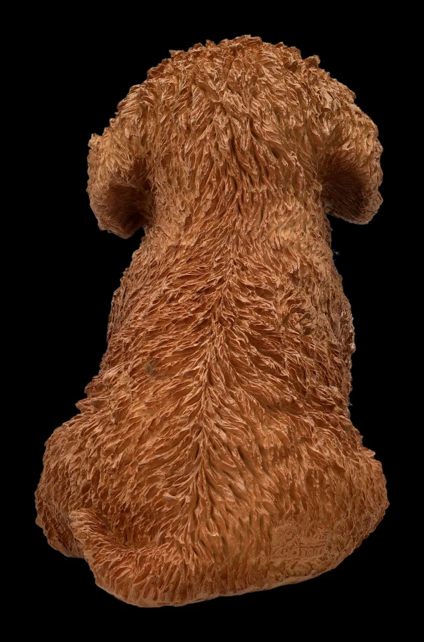 Wer die fröhlichen und verspielten Bichon Frisés liebt, wird diesem süßen Welpen von Hotant nicht widerstehen können. Der niedliche Bichon Frise Welpe wurde außerordentlich realistisch und detailreich gestaltet. Schon sehr früh zählte diese Hunderasse, wie die Bezeichnung ‚Bichon‘ (übersetzt etwa ‚Schoßhund‘) und ‚Frisé‘ (übersetzt ‚gelockt‘) zeigt, zu den absoluten Lieblingen der adeligen Welt am Hof der Französischen Könige. Nachdem er etwas in Vergessenheit geraten ist, wird er jetzt in Frankreich und Belgien gezielt gezüchtet. Vor allem, da man ihnen viele Kunststücke beibringen kann, sind diese verspielten Hunde sehr beliebt. Die 15 cm hohe, 9,5 cm breite und 14 cm tiefe Bichon Frise Welpen-Figur wurde aus hochwertigem Kunststein (Polyresin) gefertigt und mit viel Liebe handbemalt. Ncht nur für jeden Züchter, Verein oder Zuchtverband ist diese Figur von Hotant eine bezaubernde Deko, sie ist auch ein perfektes Geschenk für alle Freunde dieser Hunderasse..