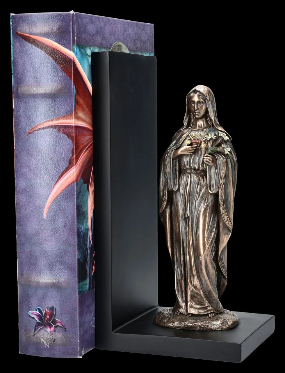 Mit der rechten Hand zeigt diese wunderschöne Marien-Figur auf ihr Herz und in der linken hält sie als Zeichen der Reinheit eine Lilie. Diese liebevoll gearbeitete Figur der Madonna kann alle Bücher die einem am Herzen liegen, aber natürlich auch alle mit religiösen oder anderen wichtigen Themen, perfekt stützen. Die außergewöhnliche, 23,5 cm hohe, 12 cm breite und 10,5 cm tiefe Buchstütze aus der Studio Collection von Veronese ist sehr stilvoll und detailreich aus edel bronziertem und fein coloriertem Kunststein (Polyresin) gefertigt. Die Buchstütze mit der Figur der Maria ist nicht nur eine wunderbare Deko für das Bücherregal, sondern passt auch hervorragend zur Buchstütze mit der schönen Jesus-Figur aus unserem Shop. Die Buchstütze ist – vielleicht auch gleich mit dem passenden Buch – ein wunderbares Geschenk. Die Jesus-Figur als Pendant zur Buchstütze mit der Marien-Figur und die Deko sind nicht in der Lieferung enthalten.