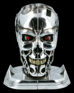 Egal ob geöffnet als Buchstütze oder zusammen geschoben als Büste, die lizensierten Terminator 2 T-800 Buchstützen sind einfach der Wahnsinn! Die handbemalten Schädelhälften sind aus hochwertigem Kunststein (Polyresin) gefertigt und werden zum absoluten Blickfang in jedem Regal oder auf dem Sideboard. Für jeden Terminator-Fan sind diese unglaublichen Buchstützen ein perfektes Geschenk und werden in einer passend bedruckten Geschenkverpackung geliefert.