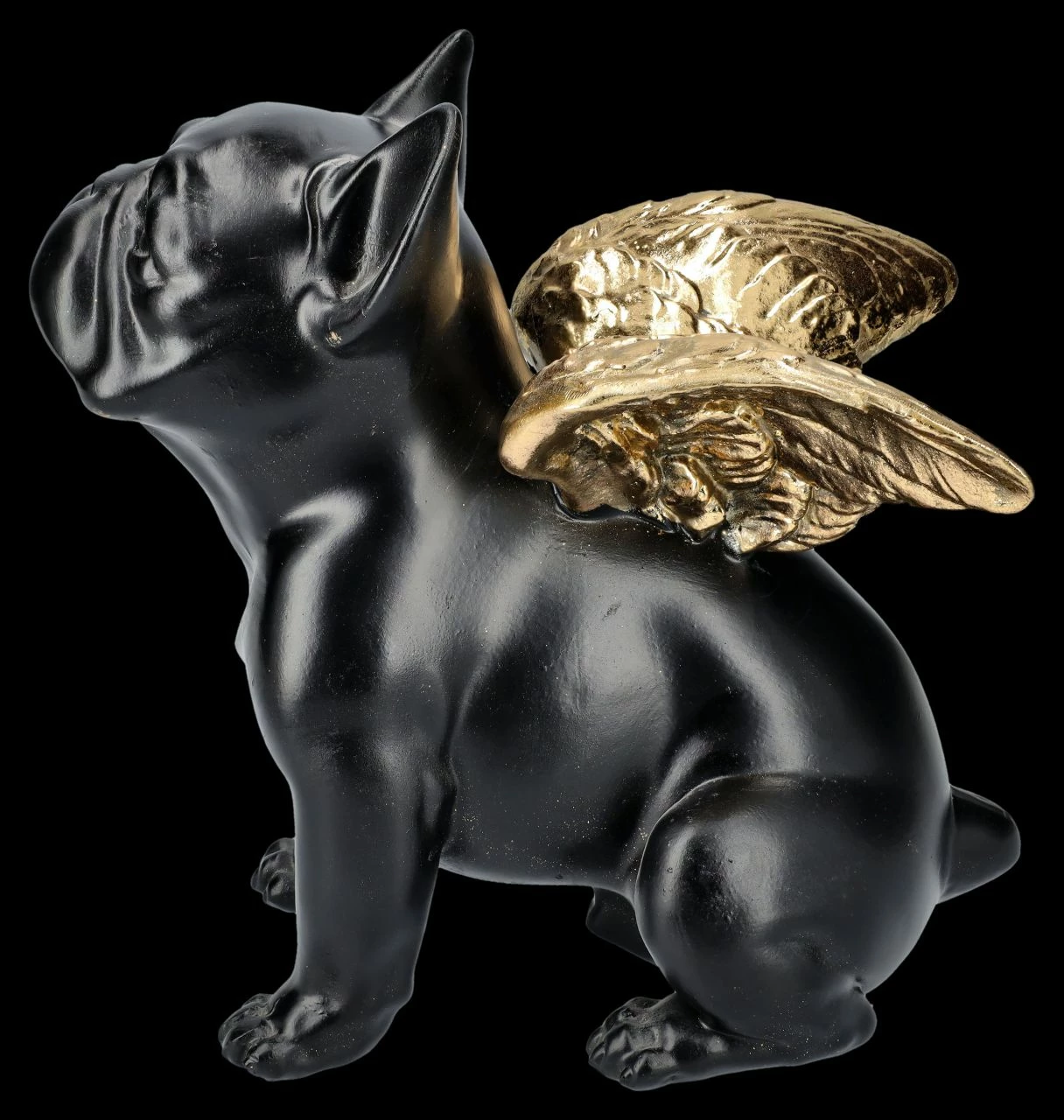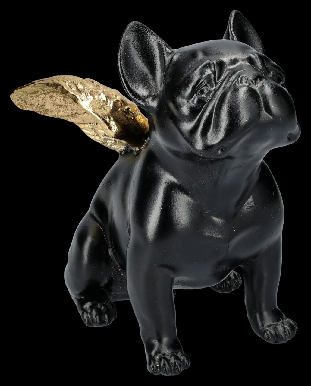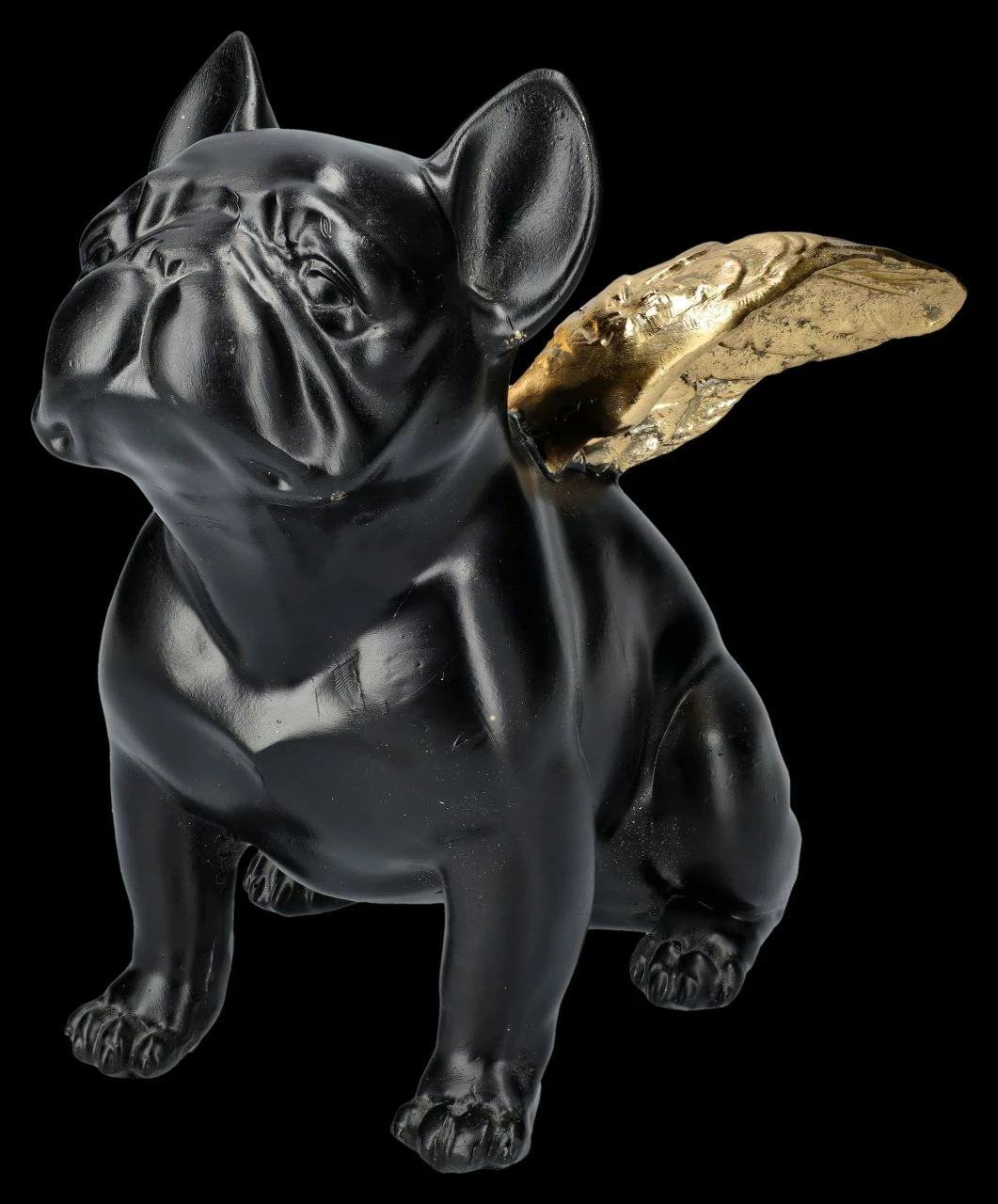 Elegante Bulldoggen Figur: Schwarz mit Goldflügeln