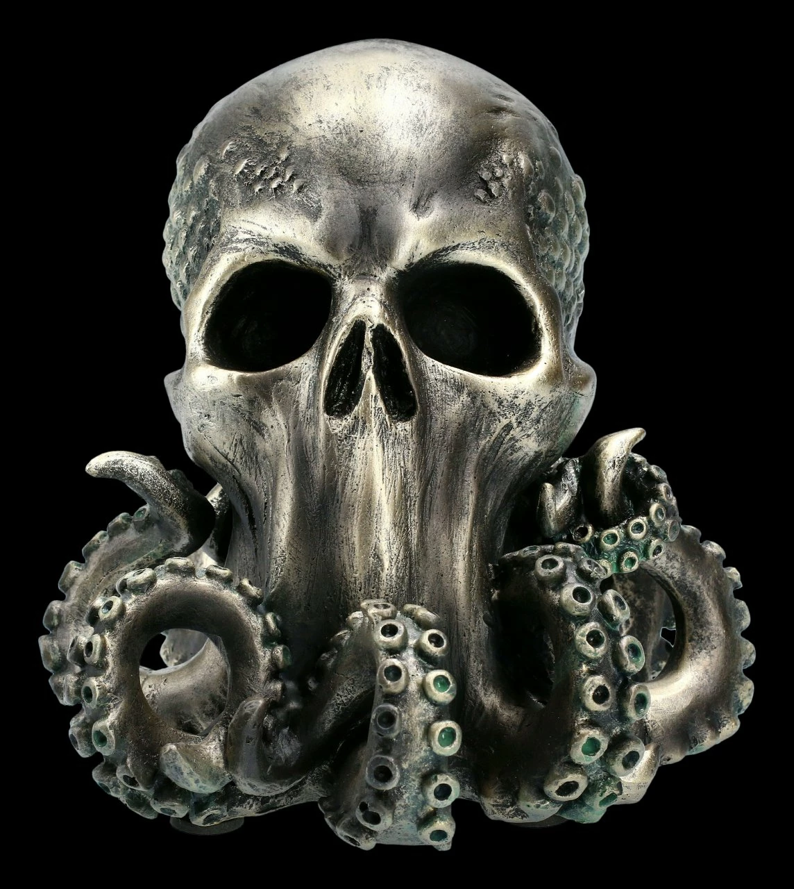 Der Cthulhu gehört zu den Großen Alten und als solcher ist er unglaublich mächtig. Seine Macht ist so stark, dass er sogar den Tod besiegt und unsterblich ist. Der Cthulhu Totenkopf zieht garantiert alle Blicke auf sich.