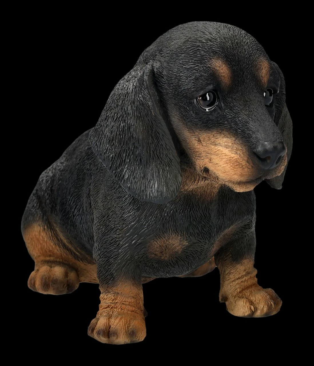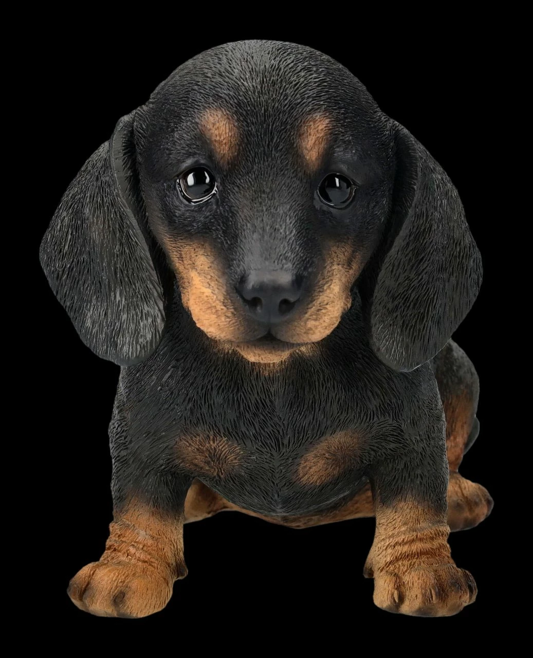 Den Ausdruck ‚Dackelblick‘ gibt es nicht umsonst, daher kann dem frechen und unschuldigen Blick dieser außerordentlich realistisch und detailreich gefertigten Figur eines Dackel Welpen von Hotant mit Sicherheit niemand widerstehen. Lange Zeit zählte der Dackel vor allem in Bayern zu den Lieblingshunden und wurde sogar als Maskottchen für die Olympiade in München ausgewählt. Aber Achtung: Der Dackel ist ein Jagdhund und zeigt wenig Respekt. Dackel haben kein Problem damit, sich auch mit größeren Tieren anzulegen und wie jeder Dackel-Freund weiß, werden sie ihr Revier laut kläffend verteidigen. Die 15 cm hohe, 10 cm breite und 20 cm tiefe Welpen-Figur eines Dackels wurde aus hochwertigem Kunststein (Polyresin) gefertigt und liebevoll handbemalt. Die Figur von Hotant ist nicht nur für jeden Verein oder Zuchtverband eine bezaubernde Deko, sondern auch ein perfektes Geschenk für alle Dackel-Freunde.
