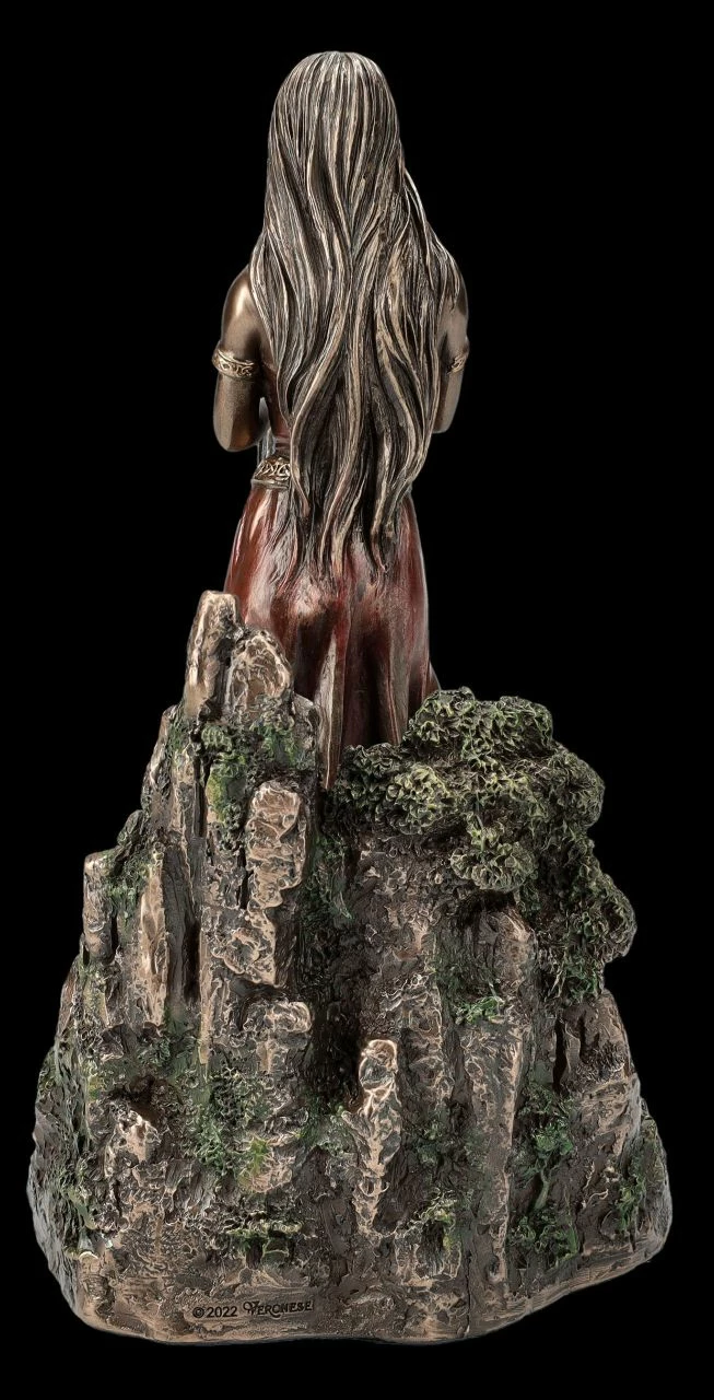 Die wunderschöne und sehr edle Darstellung aus der Studio Collection von Veronese zeigt die keltische Erdmutter Danu. In der keltischen Mythologie wird sie auch Dana genannt und auch mit der Muttergöttin Anu gleichgesetzt. Danu gilt als Mutter des Clans der irischen Gottheiten Tuatha Dé Danann, also des Volks der Göttin Danu, die aus vier mythischen Orten stammte. Unter anderem auch aus dem Gebiet der Donau, der sie den Mythen nach den Namen gegeben hat. Danu wird nicht nur als Erd- und Muttergöttin bezeichnet, sondern spendet auch als Flussgöttin Fruchtbarkeit und Nahrung. Bei dieser zauberhaften und sinnlichen Figur der Göttin Danu steht die Keltische Erdmutter vor einem Quellfluss, den sie mit ihren beiden Händen der Erde spendet. Die sehr elegante und edel bronzierte Danu-Figur wurde aus hochwertigem Kunststein (Polyresin) geschaffen und sehr fein coloriert. Sie ist 23 cm hoch, 12,5 cm breit und 15,5 cm tief und nicht nur für Freunde der keltischen Mythologie ein wunderbares Geschenk.