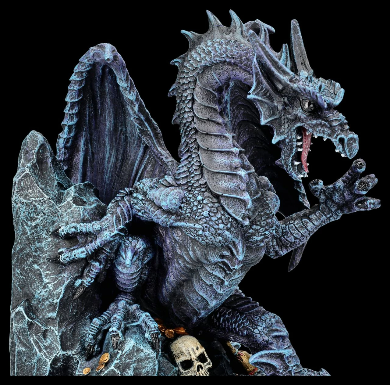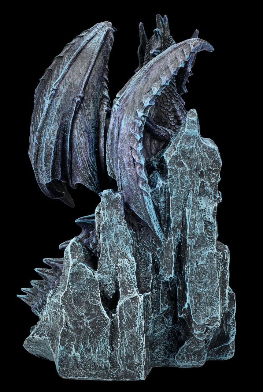 Diesem Drachen wird man mit Vorsicht begegnen. Fafnir, der legendäre Drache aus der nordischen Mythologie, taucht auch im ‚Ring der Nibelungen‘ als Fafner auf. Angriffslustig und mit weit aufgerissenem Maul verteidigt und bewacht der große Drache den Schatz zu seinen Füßen. Die 17 cm hohe, 14 cm breite und 11 cm tiefe Drachenskulptur ist detailreich aus Kunststein (Polyresin) gefertigt und wurde sorgfältig von Hand bemalt. Der legendenhafte Fafnir Drache ist eine fantastische Buchstütze für alle mystischen oder Fantasy Bücher im Bücherregal. Die beeindruckende Buchstütze ist also auch ein perfektes Geschenk für alle die Bücher lieben, oder auch eine fantasievolle Dekoration in einem Bücherladen. Unsere Dekoration ist nicht in der Lieferung enthalten.