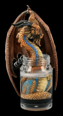Ob als Getränk oder Frucht – Orangen sind aus der Küche nicht mehr wegzudenken. Und der süße kleine orange Drache aus der Serie des Künstlers Stanley Morrison aus handbemaltem Kunststein (Polyresin) zeigt das selbstbewusst. Mit den detailreich ausgearbeiteten orangen Schattierungen, den grünen Spitzen an seinen Drachenflügeln und den Orangenblüten zu seinen Füßen macht der kleine Drache mit seiner Höhe von 12,5 cm, einer Breite von 9,0 cm und Tiefe von 8,5 cm in jeder Küche eine gute Figur. Ein tolles Geschenk nicht nur für Drachensammler!