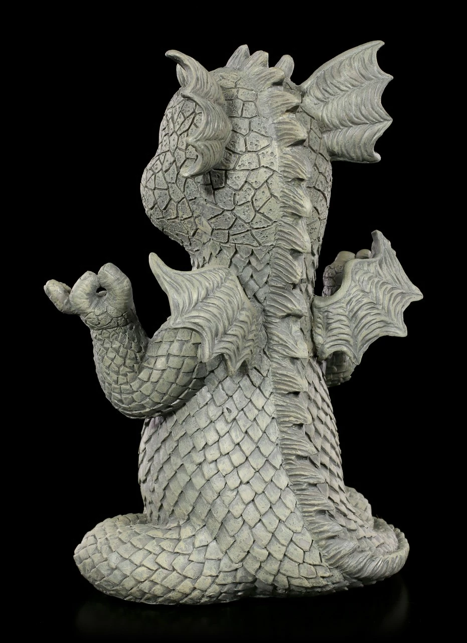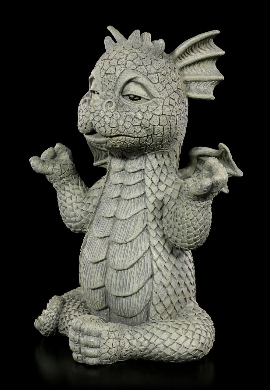 Der kleine Gartendrache ist ganz in seine Meditation vertieft und lässt sich nicht so schnell aus der Ruhe bringen. Die niedliche Figur aus handbemaltem Kunststein (Polyresin) verschönert liebevoll Ihren Garten und wird zwischen den Blumen garantiert zu einem Hingucker.