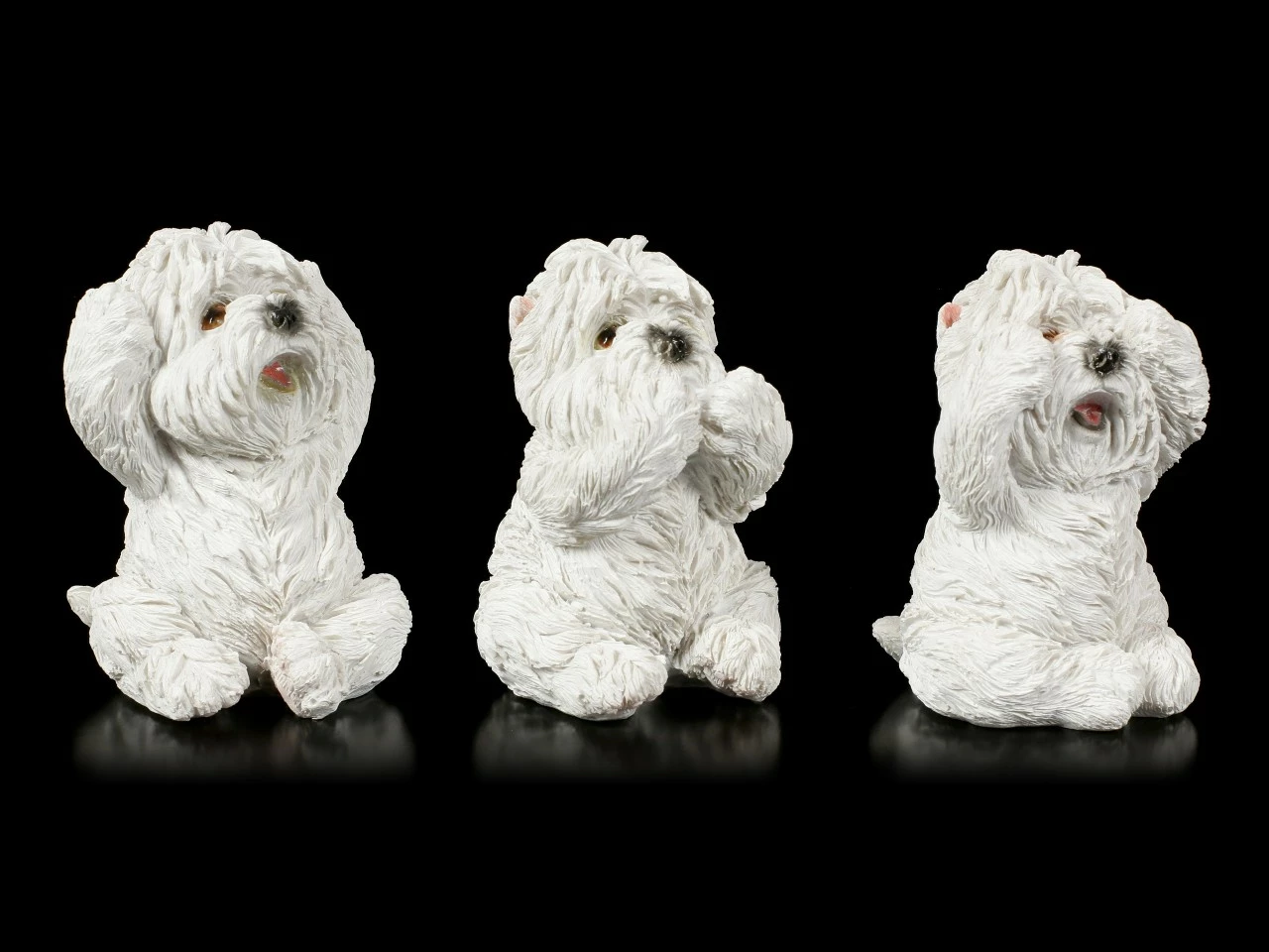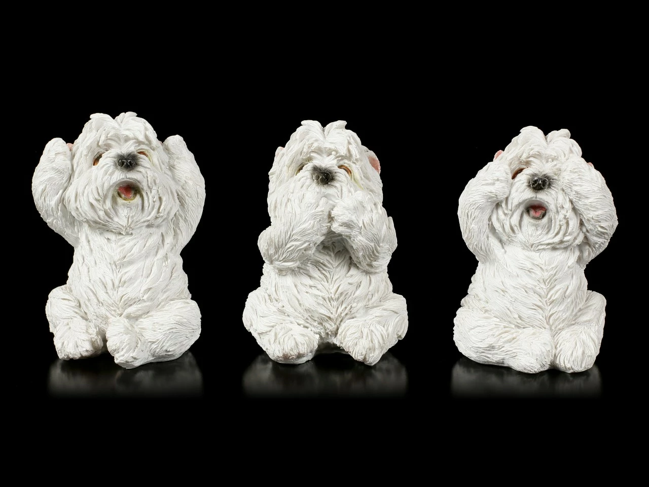 Also, wer bei diesen witzigen Westies nicht sofort entzückt ist, der sollte ganz genau hinschauen, denn was wollen die drei lustigen Gesellen sagen? Ganz genau – es ist wirklch besser, nichts Böses hören, sehen und vor allem sagen zu wollen. Die drei entzückenden Westhighland Terrier im Set sind sehr detailreich aus handbemaltem Kunststein (Polyresin) gefertigt. Die drei jeweils 7,5 hohen, 5 – 5,5 cm breiten und 4 – 5,5 cm tiefen lustigen kleinen Westies sind für jeden Hundefreund auch ein tolles Geschenk.