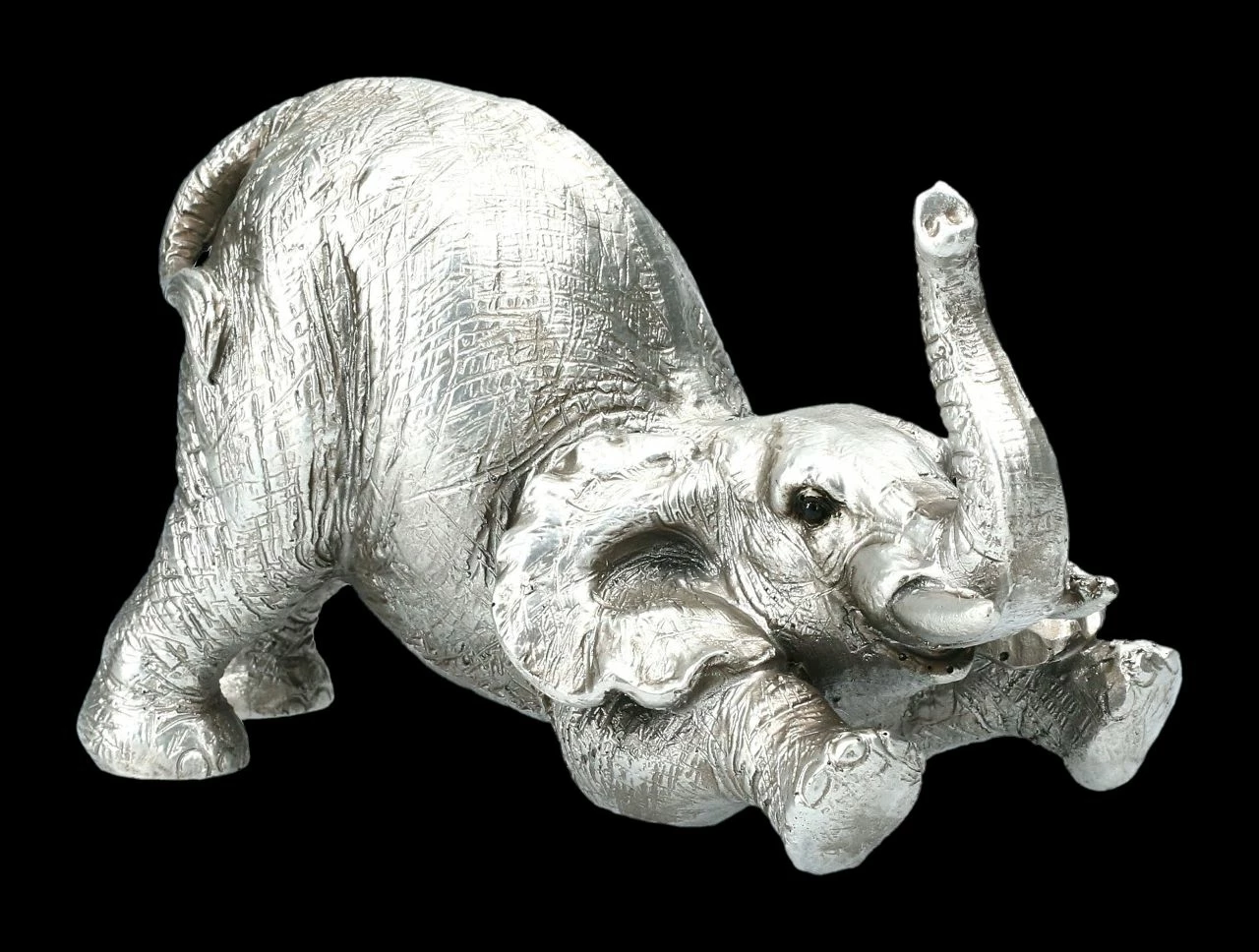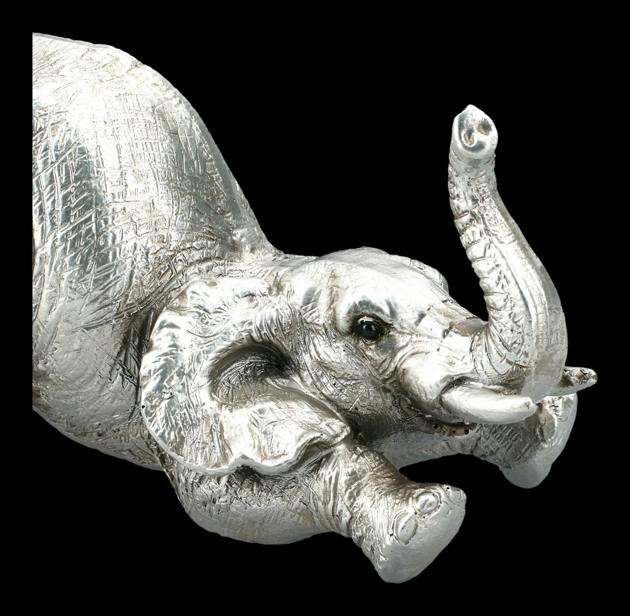 Auch Elefanten werden einmal müde und möchten sich dann ausruhen. Oder vielleicht auch zur Entspannung Yoga machen? Dass es dieserm Elefanten Freude macht, sich einfach mal zu entspannen, sieht man ihm deutlich an. Aus Kunststein (Polyresin) gefertigt, ist der Elefant im edlen, antik aussehenden Silber-Finish als Glücksbringer ein wunderbares Geschenk. Diese Elefantenfigur ist 9,0 cm hoch, 19,0 cm breit und 7,5 cm tief.