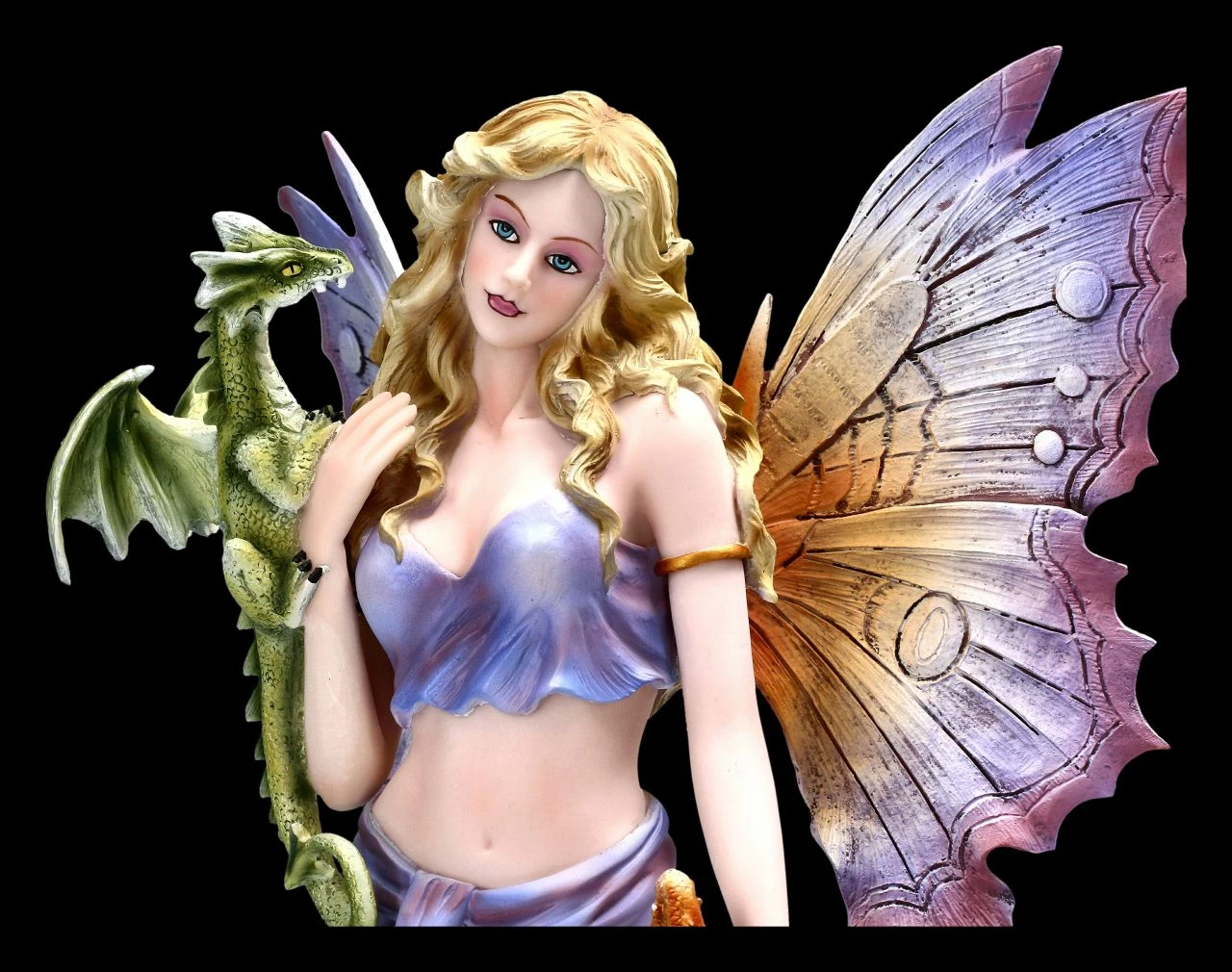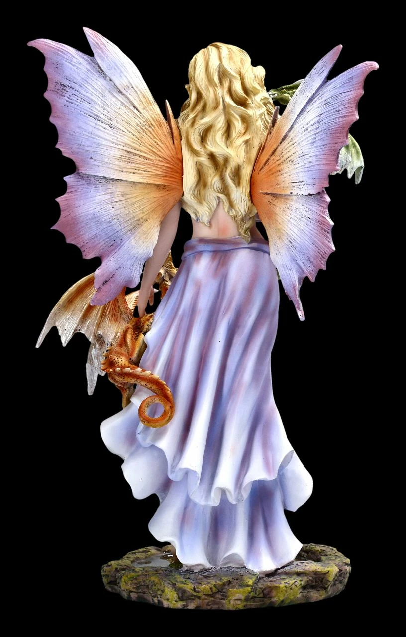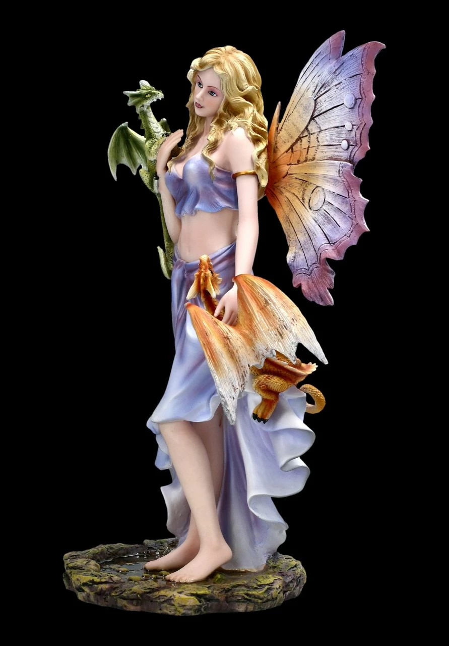 Na, willst Du auch von mir gestreichelt werden? Leicht lächelnd blickt Sie die schöne Elfe Cora an. An einer Seite versucht ein kleines rotes Drachenbaby an ihrem zarten Rock hochzuklettern, während das grüne Drachenbaby schon einen Versuch macht, von der Elfe einen Kuss zu bekommen. Cora mit den beiden Drachen Babys ist sehr detailreich aus Kunststein (Polyresin) gefertigt und liebevoll handbemalt. Die Haut und die Kleidung der Elfe Cora leuchten in zart pastelligen Tönen. Die Flügel der Elfe sind zum Stecken. Mit einer Höhe von 33,0 cm, einer Breite von 19,5 cm breit und einer Tiefe von 15 cm freut sich jeder, der Elfen und Drachen liebt, über die Elfe Cora mit den kleinen Drachen als Geschenk.