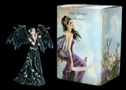 Wie eine wunderschöne Göttin sitzt die Elfe Gidith hoch oben auf einem Felsen. Auf der erhobenen linken Hand sitzt ihr Rabe, der sie ständig begleitet. In der rechten Hand hält sie ein Schwert, das sich bei genauerem Hinsehen als Brieföffner herausstellt. Ihre rötliche Haarpracht fällt in langen Wellen über ihre Schultern. Das prächtige dunkelrote Gewand der märchenhaft schönen Elfe Gidith bauscht sich über dem seidig weich fallendem weißen Unterkleid. Ihre zarten und perfekt zum Gewand passenden Flügel sind zum Stecken. Die bezaubernde Elfe stammt aus dem Atelier von Nene Thomas, der berühmten Fantasy-Künstlerin aus Oklahoma. Die 28 cm hohe, 22,5 cm breite und 21 cm tiefe Elfen-Figur wurde mit großem Aufwand aus Kunststein (Polyresin) gefertigt und mit viel Liebe zum Detail von Hand bemalt. Das Schwert aus Metall als Brieföffner ist 17 cm lang. Die Elfe Gidith mit dem Brieföffner ist ein herrliches und auffallendes Accessoire für jeden Schreibtisch und man kann ihr nur wünschen, dass sie stets ausschließlich liebevolle Briefe öffnen muss. Für alle Fans von Nene Thomas und für jeden, der von den märchenhaften Welt der Elfen begeistert ist, ist dieser prächtige Brieföffner ein wunderbares Geschenk.