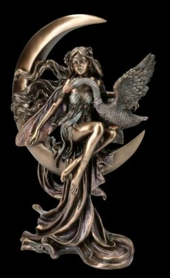Müde, aber glücklich vom wilden Flug durch die erwachende Natur hat sich die zauberhafte Elfe an die erste Tulpe auf ihrem Weg gelehnt und ist kurz eingenickt. Nach dem langen Winter ist es kein Wunder, dass der erste Flug über die Wiesen und Felder sie ermüdet. Vor allem, da sie unterwegs auch glückselig schon die ersten kleinen Blüten aufgesammelt hat, um ihr langes Haar damit zu schmücken. Die schöne Elfe wirkt bis zu den feinen Gesichtszügen, den mit Blüten geschmückten langen Locken, den schönen großen Flügeln und dem fließenden Kleid einfach entzückend. Und auch die zart colorierte Tulpe mit den Blättern ist einfach wunderschön. Durch die edle Bronzierung und sehr fein abgestimmte Colorierung wirkt die schöne Elfe-Figur aus hochwertigem Kunststein (Polyresin) beinahe wie eine Arbeit aus der Jugendstilzeit. Die 22,5 cm hohe, 15,5 cm breite und 11,5 cm tiefe bezaubernde Elfe aus der Studio Collection von Veronese ist wie ein Frühlingsbote und ein wahres Schmuckstück in jedem Ambiente. Die zauberhafte Elfe, die an der Tulpe lehnt, ist für jeden Sammler und für alle, die die fantasievolle Welt der Elfen lieben, ein wunderbares Geschenk.