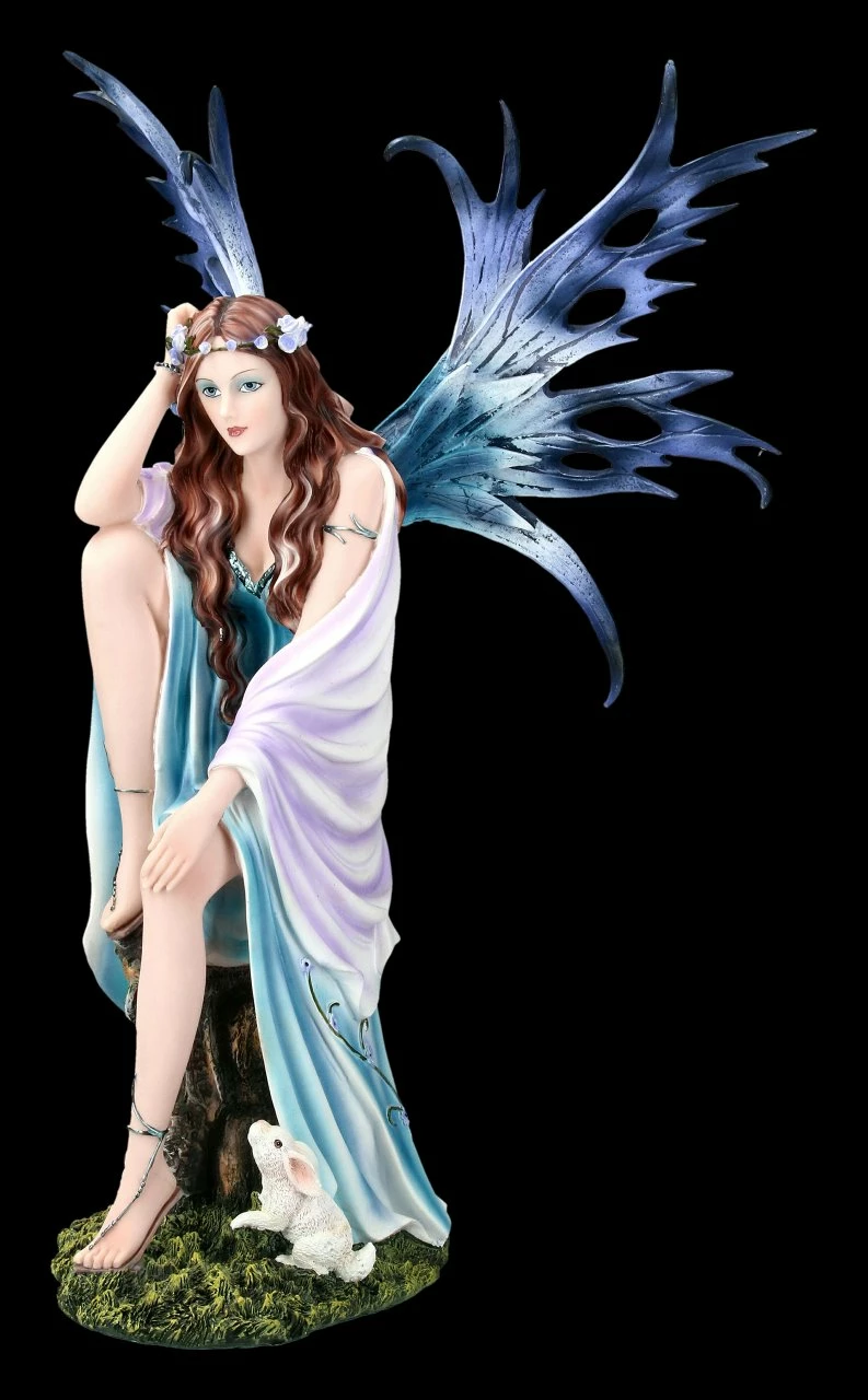 Die anmutige Elfe Virien sitzt gedankenverloren auf einem Ast. Ein kleiner niedlicher Hase besucht sie und hofft auf ein paar Streicheleinheiten. Diese Figur bringt eine angenehm entspannte Atmosphäre in Ihre Wohnung.