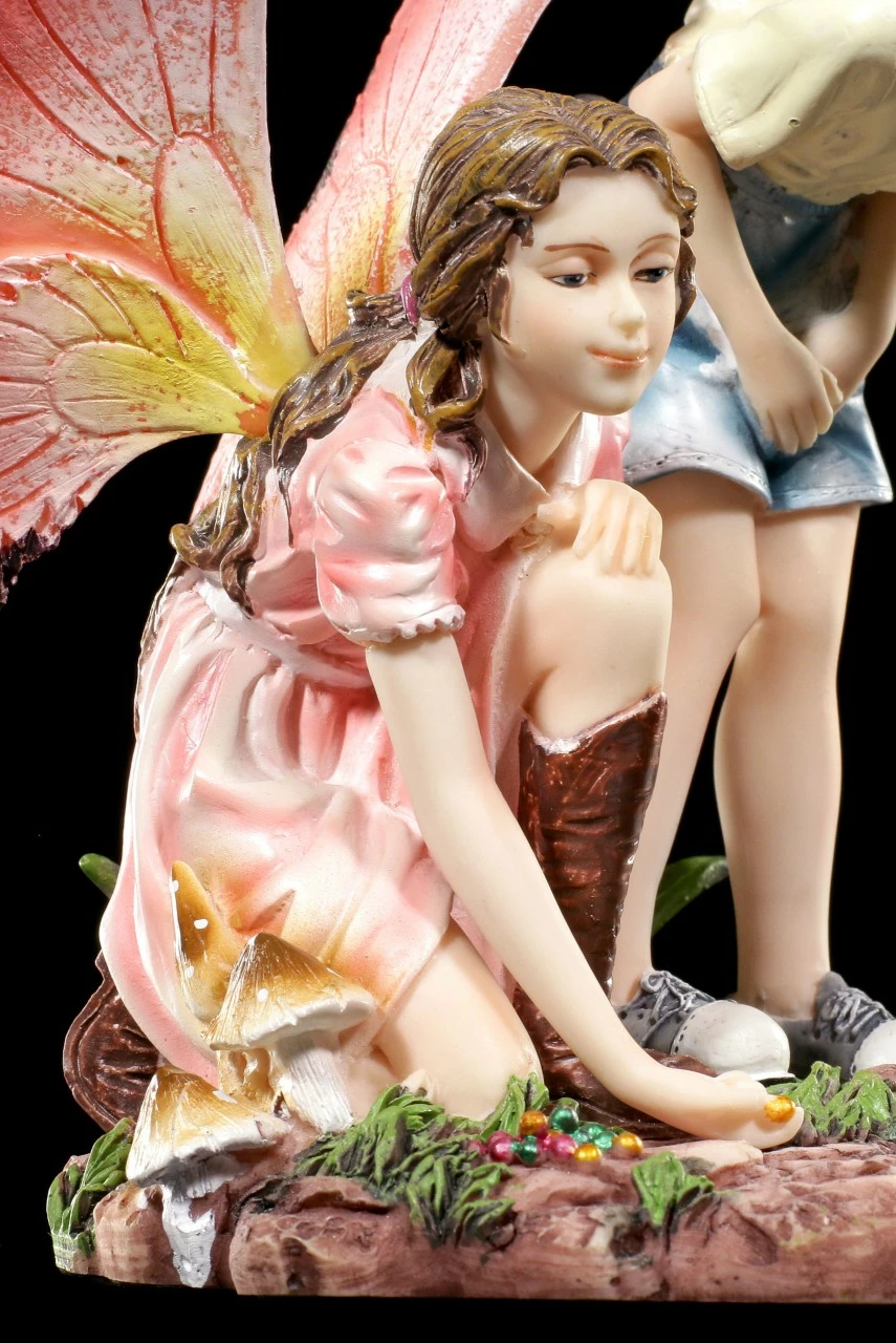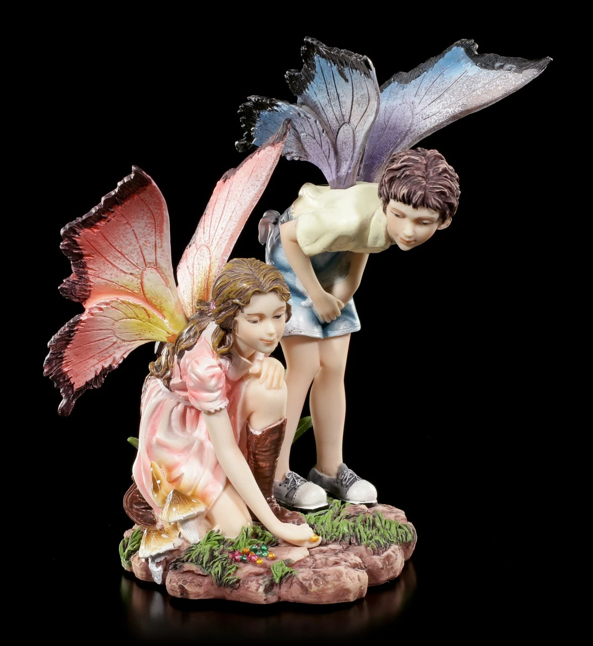 Murmeln-schießen ist der liebste Zeitvertreib von den Elfen-Geschwistern. Dieses handbemalte Elfen Figuren Ensemble sollte in keiner Sammlung fehlen. Fast kann man die Murmeln klackern und den Wind im Gras rascheln hören.