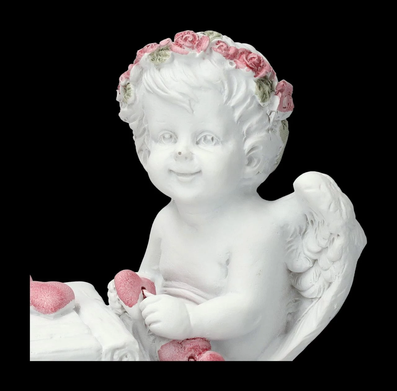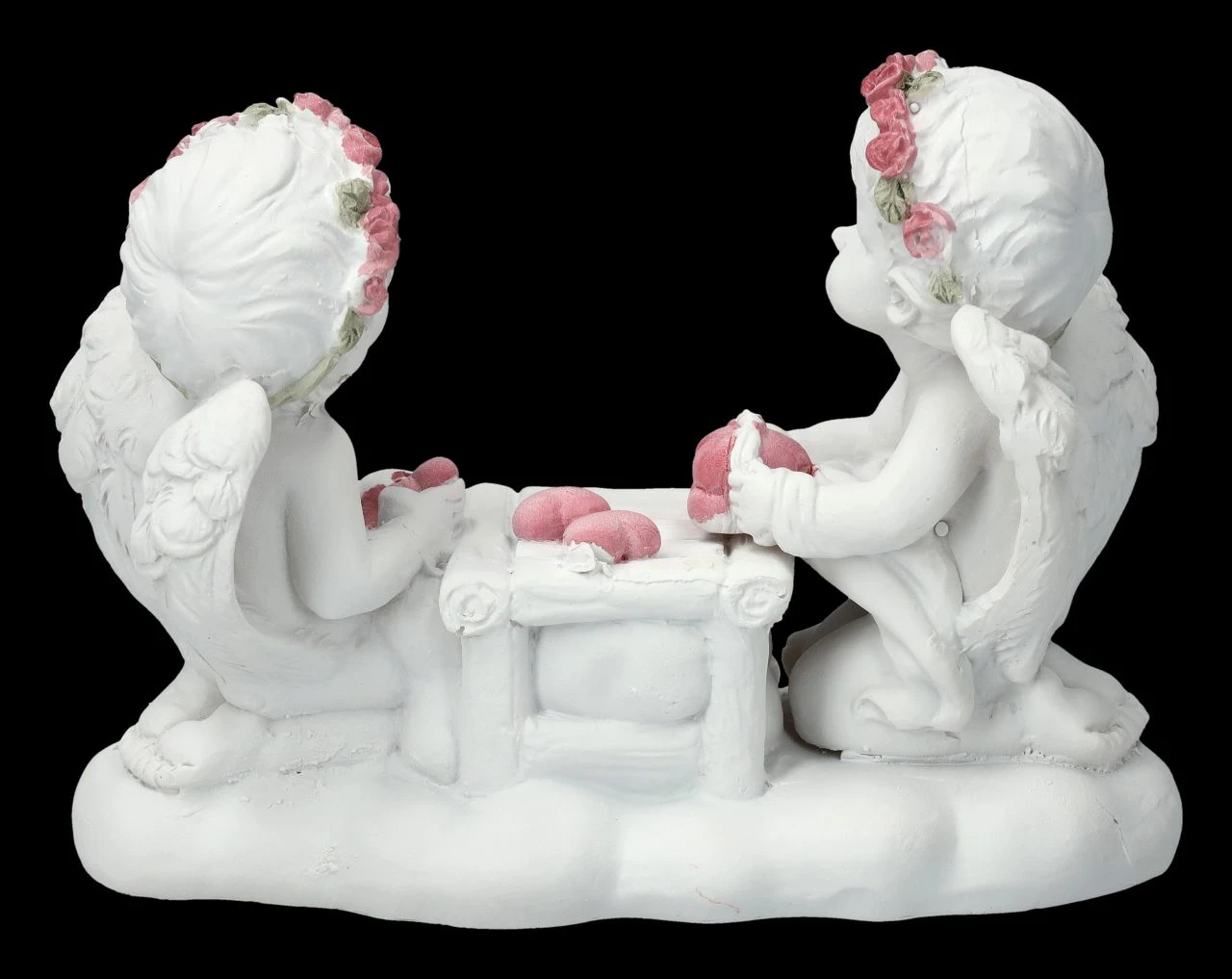 Liebe zu verschenken ist ihre Aufgabe, daher sitzen die beiden niedlich Putten fröhlich an ihrem Tisch und basteln zahlreiche Herzen. Je fleißiger sie sind, umso besser, denn sie gehören zu der Engelschar die in unserem Shop gelandet ist. Die Figur mit den bastelnden Putten ist 8 cm hoch, 11 cm breit und 5,5 cm tief. Sie wurde aus liebevoll handbemaltem Kunststein (Polyresin) gefertigt und ist nicht nur für jeden Hochzeitstisch eine tolle Deko, sie ist auch ein fantastisches Geschenk für den Engel seines Herzens.