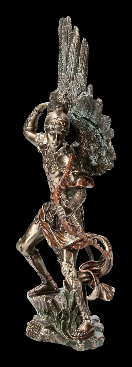 In der hebräischen Überlieferung gilt der Erzengel Uriel als Licht / Feuer Gottes. Er wird hier mit seinem Attribut, einem Feuerbogen, dargestellt. Diese elegante bronzierte und colorierte Figur aus Kunststein (Polyresin) stammt aus der Serie Studio Collection des Herstellers Veronese und überzeugt durch die herausragende Ausarbeitung aller Details.