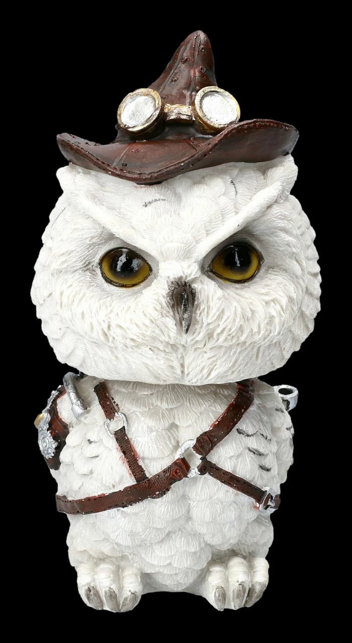Dass Eulen als weise gelten, hat sich schon herumgesprochen. Also werden alle interessierten Waldbewohner nach dem Ruf der Schneeeule zusammen kommen, um dem gefiederten Erfinder bei seinem Vortrag zu lauschen. Die lustige Eule im Steampunk Look ist aus handbemaltem Kunststein (Polyresin) gefertigt und mit der Höhe von 16 cm, der Breite von 8 cm und der Tiefe von 9 cm eine tolle Deko für den Schreibtisch. Feathered Inventor ist aber auch ein witziges Geschenk für alle werdenden Erfinder.