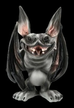 So genau ist es nicht zu erkennen – fletscht sie die Zähne oder versucht sie einfach liebenswert zu lächeln? Zumindest weiß Ptera, dass sie ursprünglich von den Pteranoden, also den Flugechsen abstammt. Wie der Pteranodon hat sie Flughäute und ist ein genauso geschickter Flieger. Aber keine Angst – Ptera saugt kein Blut, sondern findet Insekten viel leckerer. Die ungewöhnliche Fledermaus Figur aus handbemaltem Kunststein (Polyresin) ist 16,5 cm hoch, 11 cm breit und 8 cm tief. Am besten steht sie auf der Fensterbank, aber auch auf dem Schreibtisch oder im Regal untergebracht, wird die Fledermaus Ptera zu vielen Fragen Anlass geben.