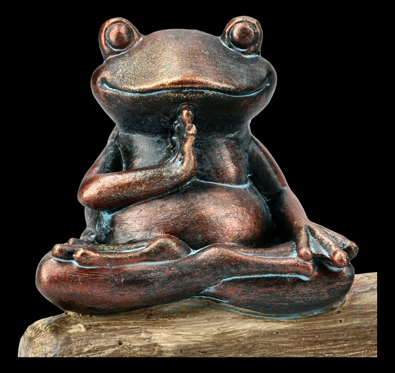 Auch Fröschen wird mal alles zuviel und dann hilft nur noch Meditieren. Die drei witzigen, meditierenden Frösche auf dem Ast sehen dabei sehr zufrieden aus. Sie sind detailreich aus handbemaltem Kunststein (Polyresin) gefertigt und 10 cm hoch, 26 cm breit und 7,5 cm tief. Auf der Fensterbank, dem Schreibtisch oder auch für ein Yoga-Studio sind die lusten meditierenden Frösche eine wunderbare und äußerst humorvolle Dekoration.