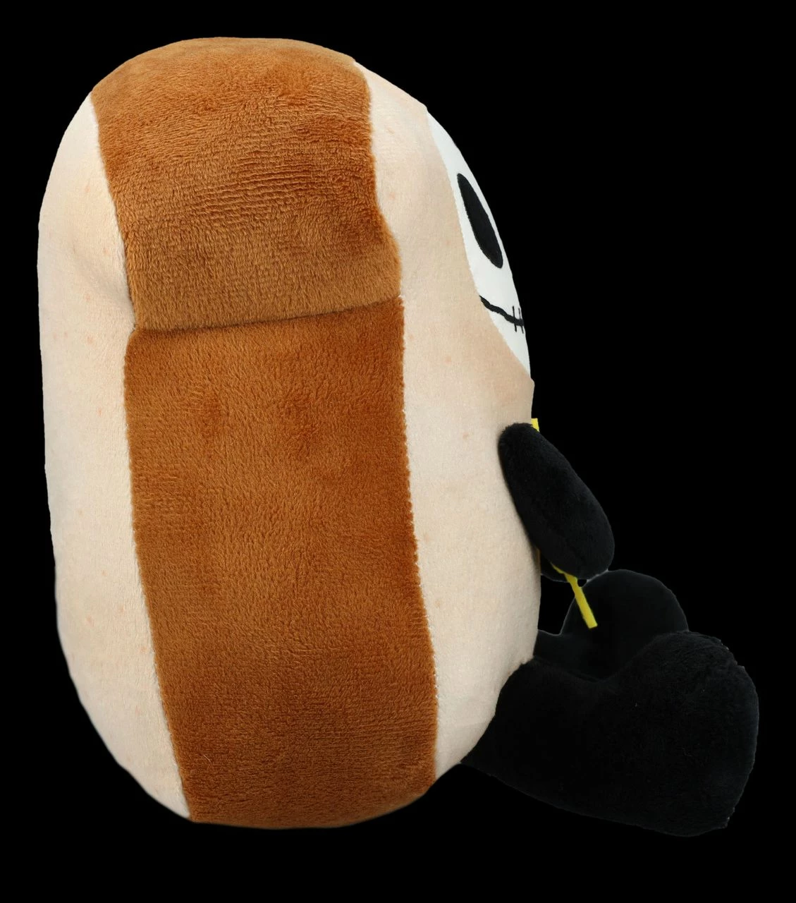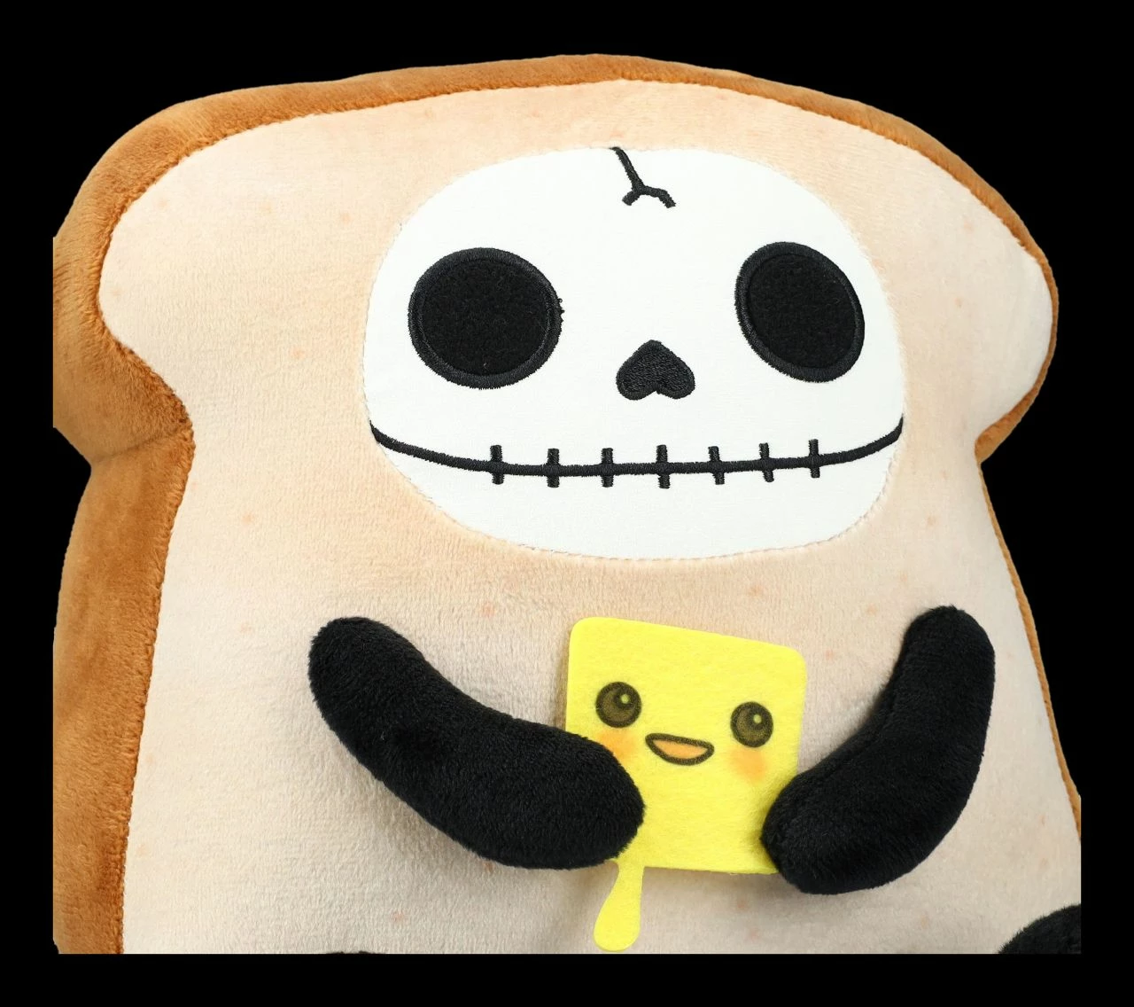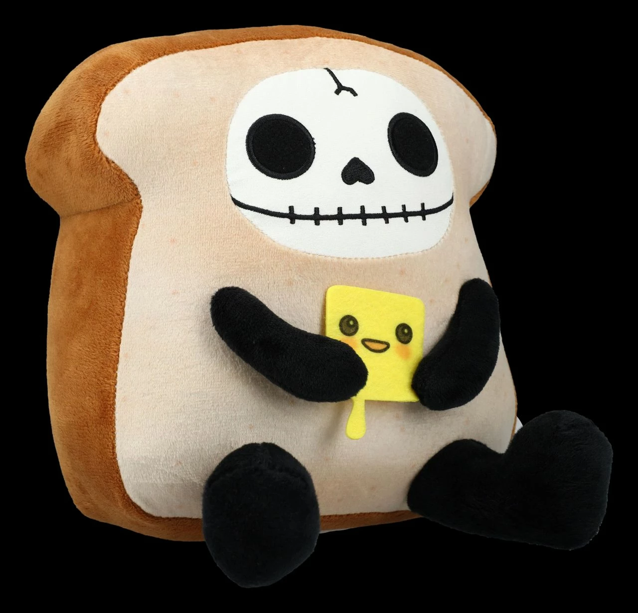 Ein Toast mit einer schmelzenden Käsescheibe zum Frühstück gefällig? Reinbeißen wird man aber in das als Toast verkleidete niedliche Furrybone-Skelettchen sicher nur im Notfall. Denn die putzige Furrybone-Plüschfigur Toasty wurde aus kuschelig weichem 100 % Polyester gefertigt. Für Babies und Kleinkinder ist sie trotzdem nicht geeignet. Aber schließlich lieben nicht nur Kinder Kuscheliges. Auch alle Gothic- und Halloween- und Manga–Fans werden sich darüber freuen, wenn sie das 21 cm hohe, 18 cm breite und 17 cm tiefe plüschige Totenkopf-Figürchen Toasty als Geschenk überreicht bekommen. Sammler finden übrigens eine große Auswahl an weiteren niedlichen Furrybone-Figuren in unserem Shop.