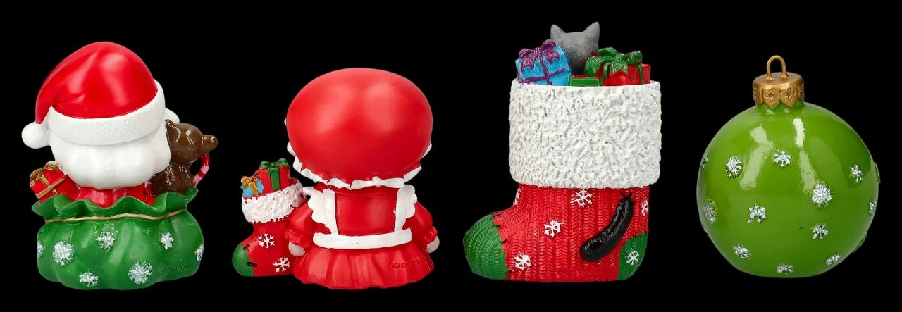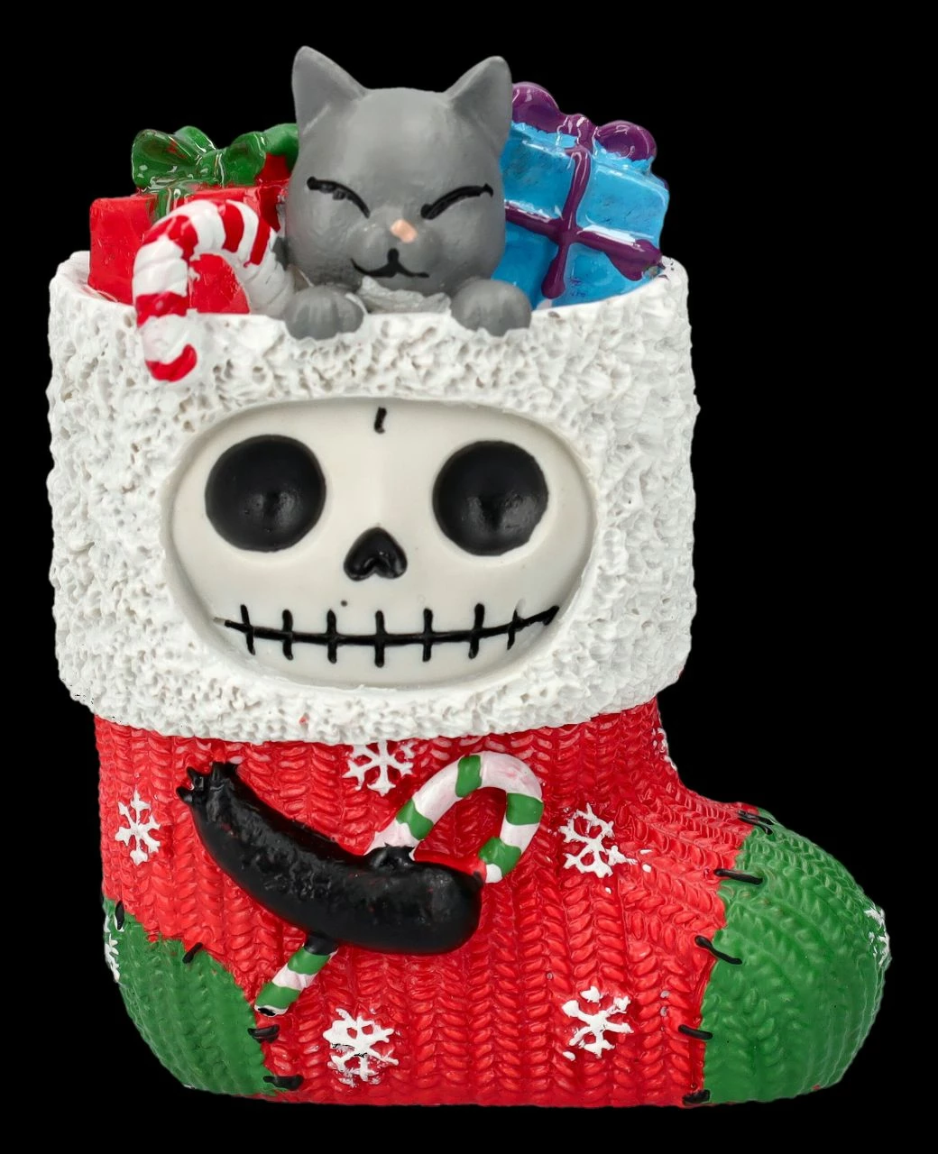 Da haben sich die kultigen Furrybones wieder selbst übertroffen und sich genial verkleidet. Bulby hat sich in einer grünen Weihnachtskugel versteckt und ist darin kaum zu entdecken. Stockton hat sich für den roten Weihnachtsstrumpf entschieden und hofft wohl, dass etwas für ihn dabei abfällt. Mrs Claus kommt vermutlich direkt aus der Backstube und hat die Weihnachtssocke gleich mit ‚Köstlichkeiten‘ aus ihrer Weihnachtsküche gefüllt. Und Santa, der Weihnachtsmann hat sich selbst in den Sack mit dem Spielzeug gesteckt… Die vier niedlichen Furrybones sind detailliert aus Kunststein (Polyresin) gefertigt und mit viel Liebe von Hand bemalt. Sie sind 7 – 8,5 cm hoch, 6 -7 cm breit und 4 – 6 cm tief. Für alle Fans der niedlichen und zugleich etwas gruseligen Furrybones-Skelettchen ist diese exklusive Sammleredition mit dem aktuellen Furrybones Weihnachts-Set 2023 einfach ein geniales Geschenk. Die kultigen vier Helden sind aber auch eine absolut süßes Mitbringsel zur Weihnachts-Party-Einladung und kommen passenderweise gleich in einem Geschenkkarton.