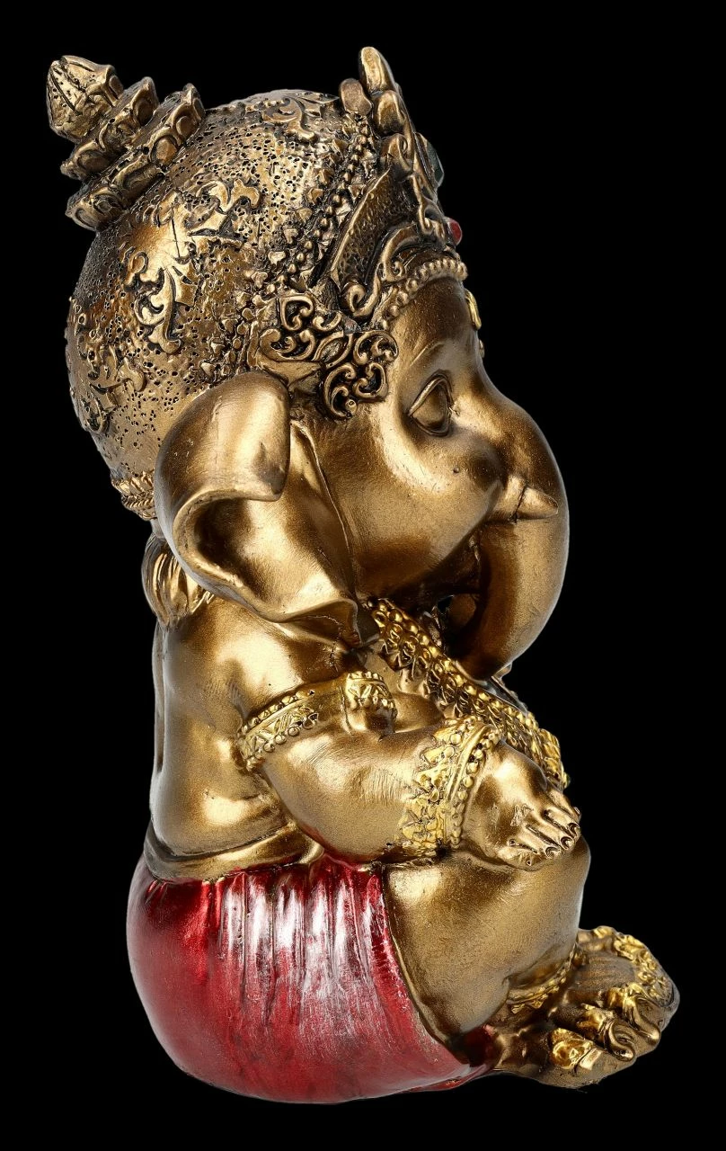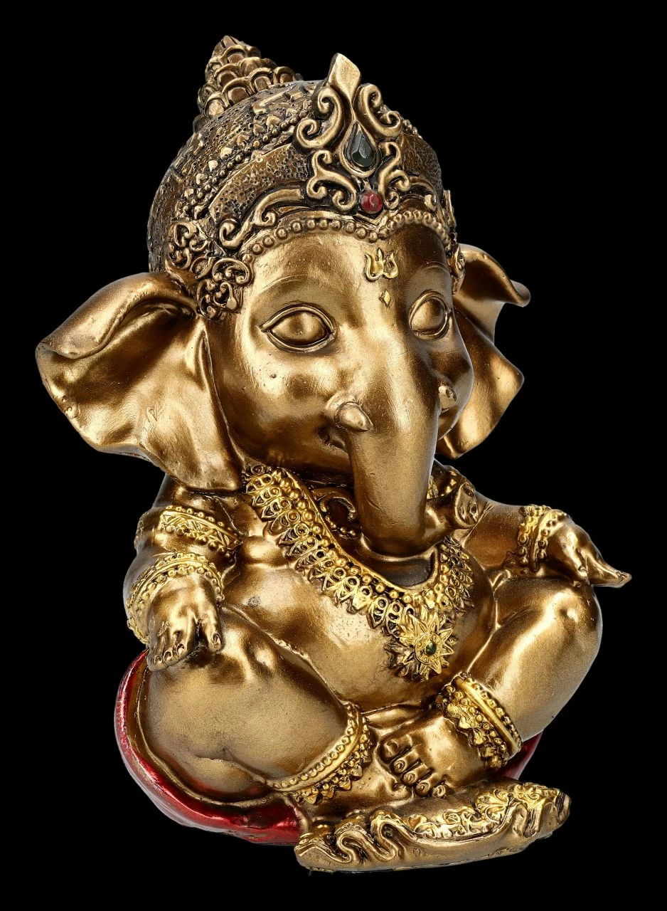 Der elefantenköpfige Gott Ganesha steht für die Überwindung von Hindernissen, für eine gute Anfangsendergie, aber auch für das Genießen der schönen Seiten des Lebens. Er wird nicht nur im Hinduismus, sondern auch im Buddhismus als Gott der Weisheit, der Wissenschaften und der Künste verehrt. Die kleine meditierende Ganesha-Figur wurde aus liebevoll handbemalten Kunststein (Polyresin) gefertigt. Sie ist 12,5 cm hoch, 9 cm breit und 7,5 cm tief und dient nicht nur als Unterstützung bei der Meditation, sondern ist auch als Glücksbringer ein perfektes Geschenk.