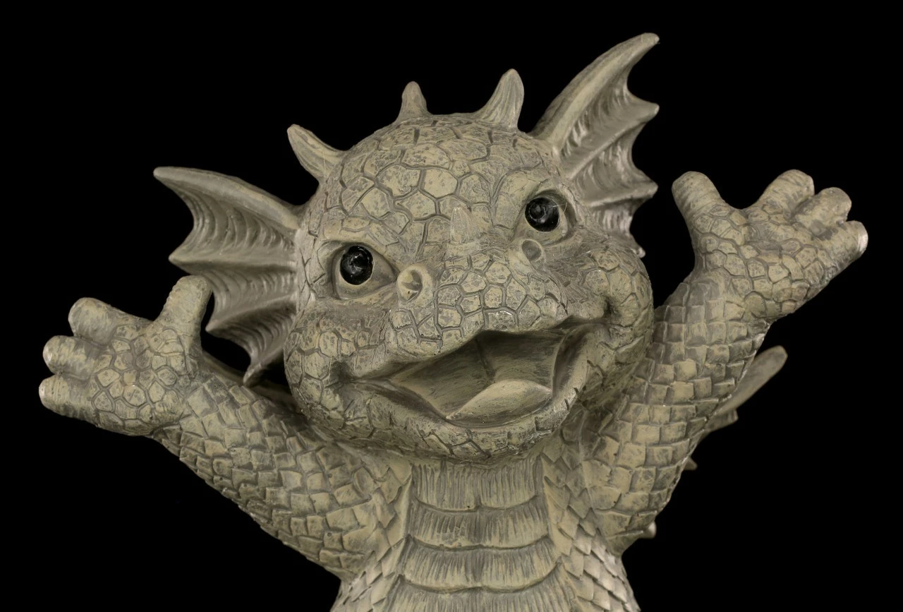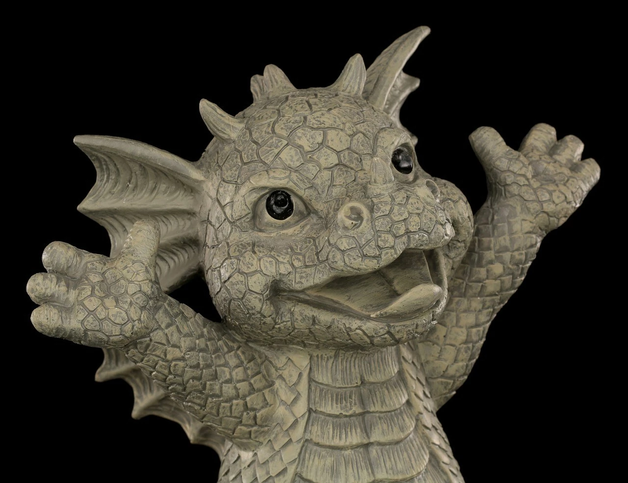 Der niedliche Drache begrüßt mit offenen Armen freudig alle neuen Gäste. Bei so einer Begrüßung fühlt sich doch jeder gleich Willkommen. Der kleine Drache ist aus liebevoll handbemaltem Kunststein (Polyresin) und wird sicher jedem Besucher ein Lächeln entlocken.