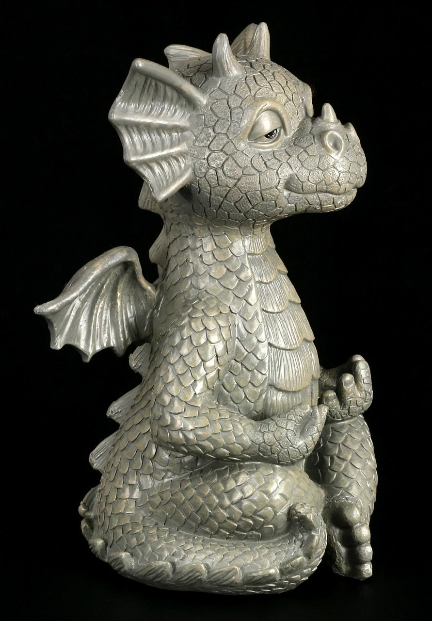 Entspannt und konzentriert macht der kleine Drache Yoga. Dieser Drache sieht dabei so entspannt aus, dass er eine Ruhe in den Garten bringt. Diese niedliche Gartenfigur ist aus handbemaltem Kunststein (Polyresin) und fühlt sich auch in einem Yogastudio garantiert wohl.