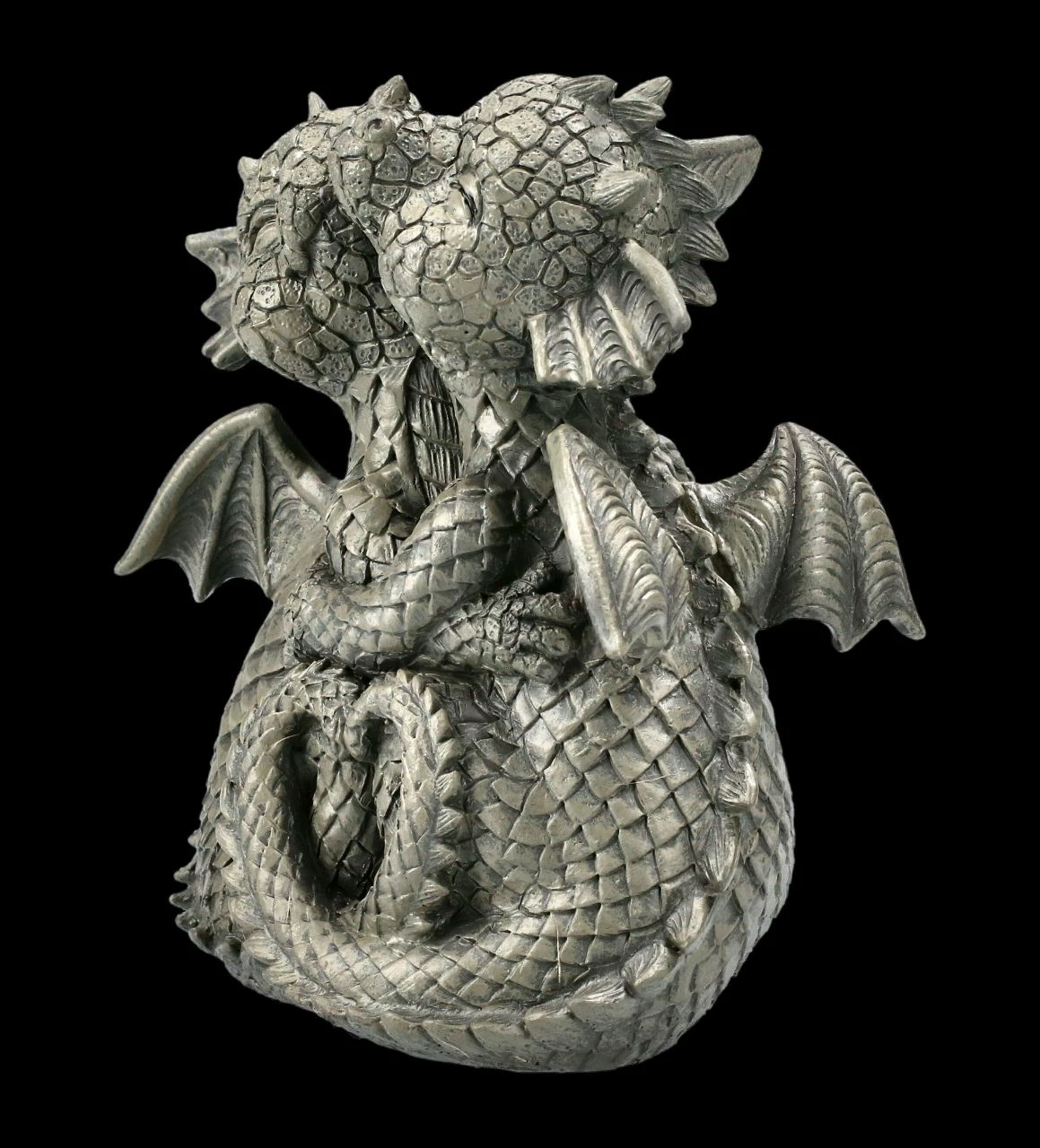 Kuscheln ist hier angesagt – liebevoll umarmen sich die beiden Drachen und sogar ihre Schwanzspitzen formen ein Herz. Die Loving Dragons sind liebevoll aus Kunststein (Polyresin) gefertigt und handbemalt. Mit einer Höhe von 12 cm, der Breite von 10 cm und der Tiefe von 6 cm ziehen sie in Ihrem Garten alle Blicke auf sich und sind auch ein tolles Geschenk für liebe Gartenfreunde.
