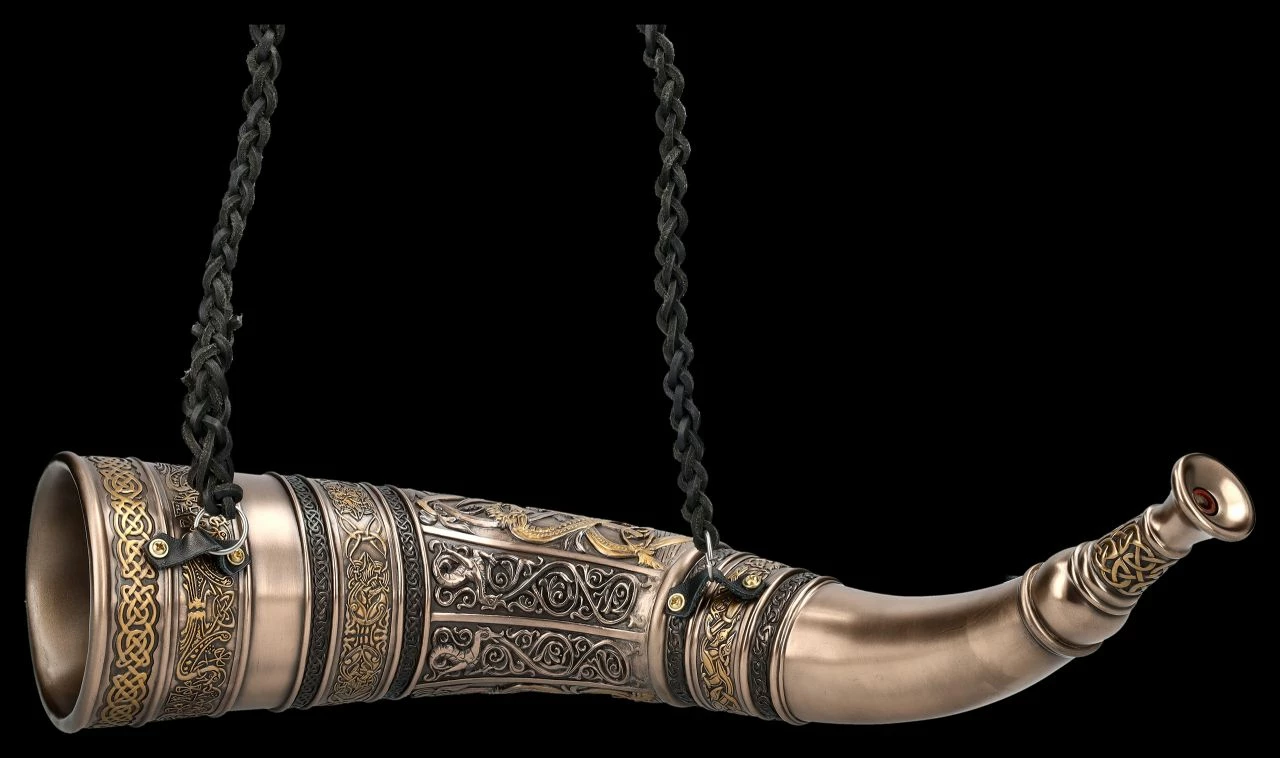 Das Germanische Signalhorn war das Rufhorn der Wikinger mit dem sie sich bei der Seefahrt und im Kampf verständigen konnten. In der germanischen Mythogie wurde das Signalhorn aber auch dazu verwendet, die Götter Asgards zu rufen und es wurde auch als Gjallarhorn des Gottes Heimdall bezeichnet.
