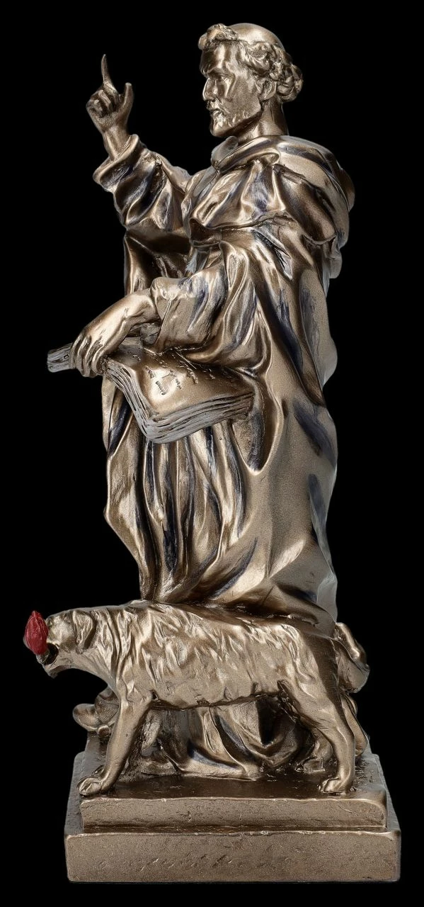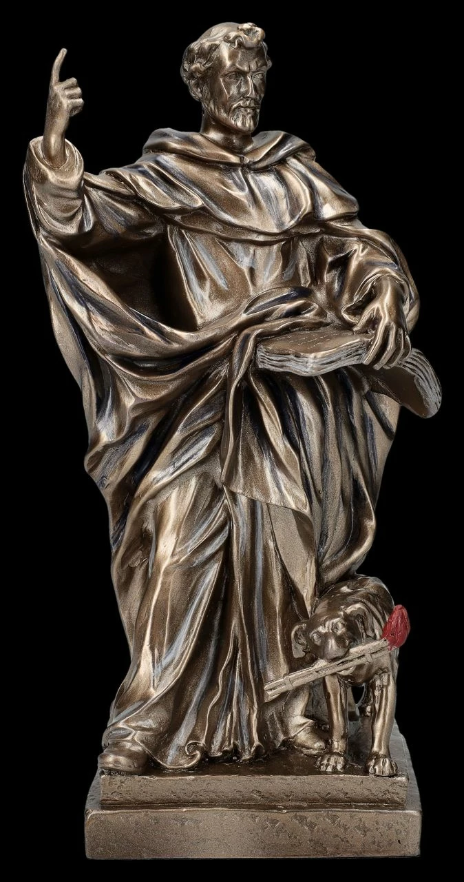 Dominikus: Die bronzierte Heiligenfigur mit seinem treuen Hund
