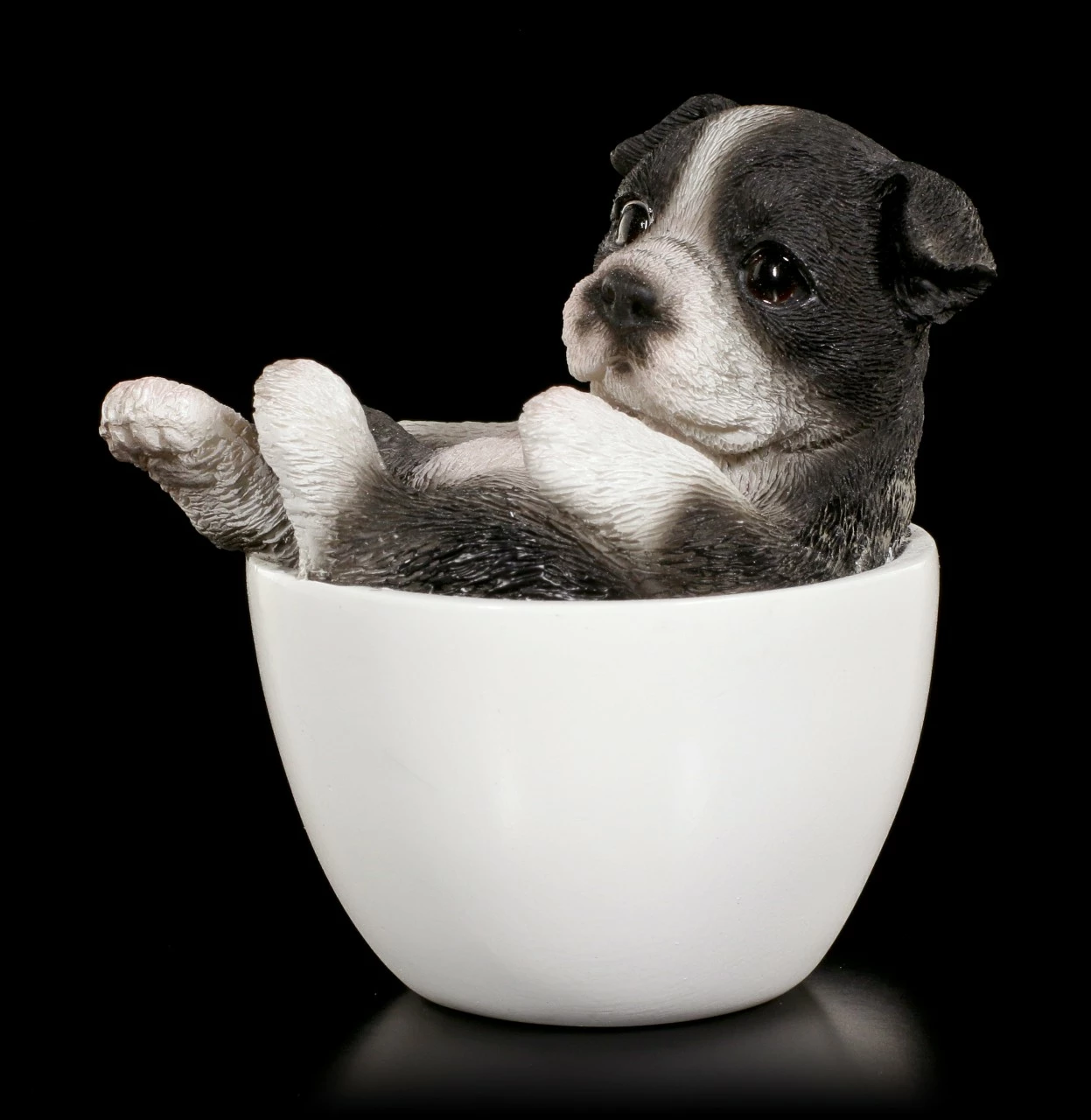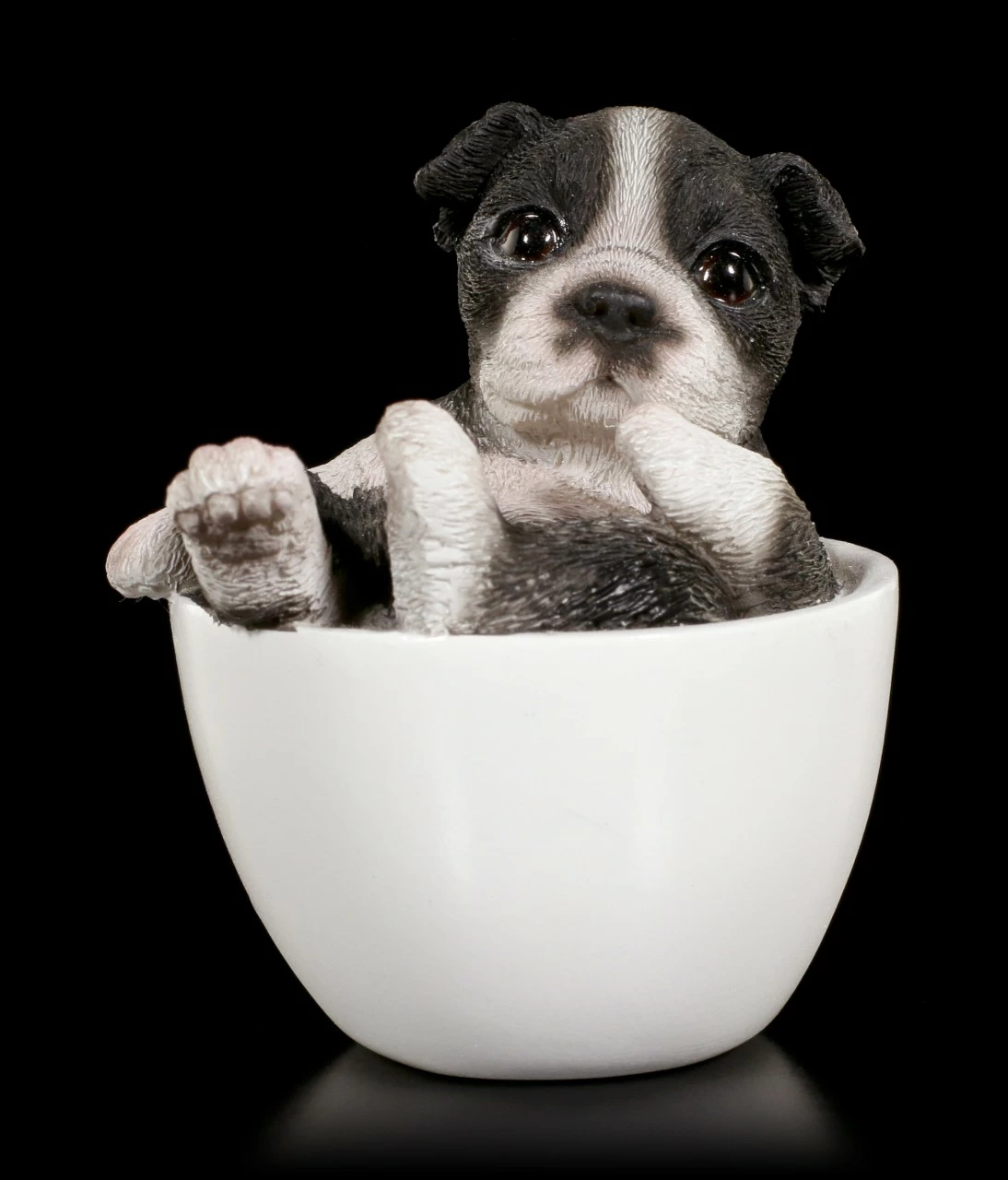 Boston Terrier Figur: Welpe in Tasse