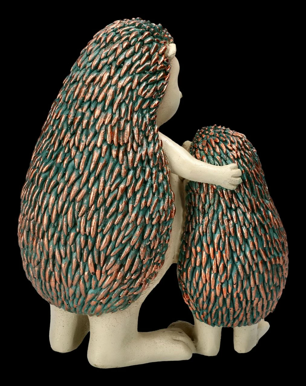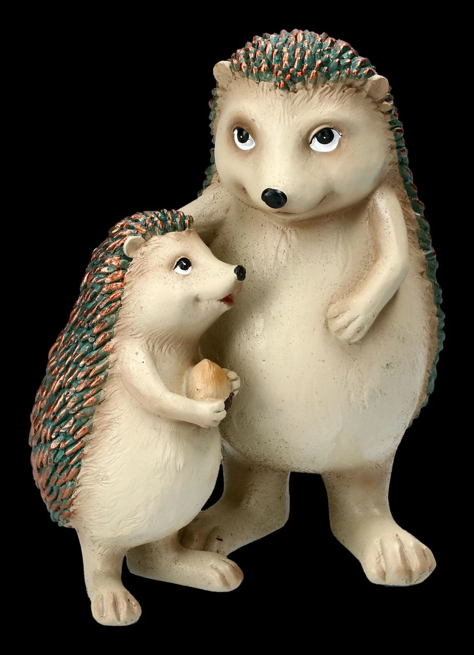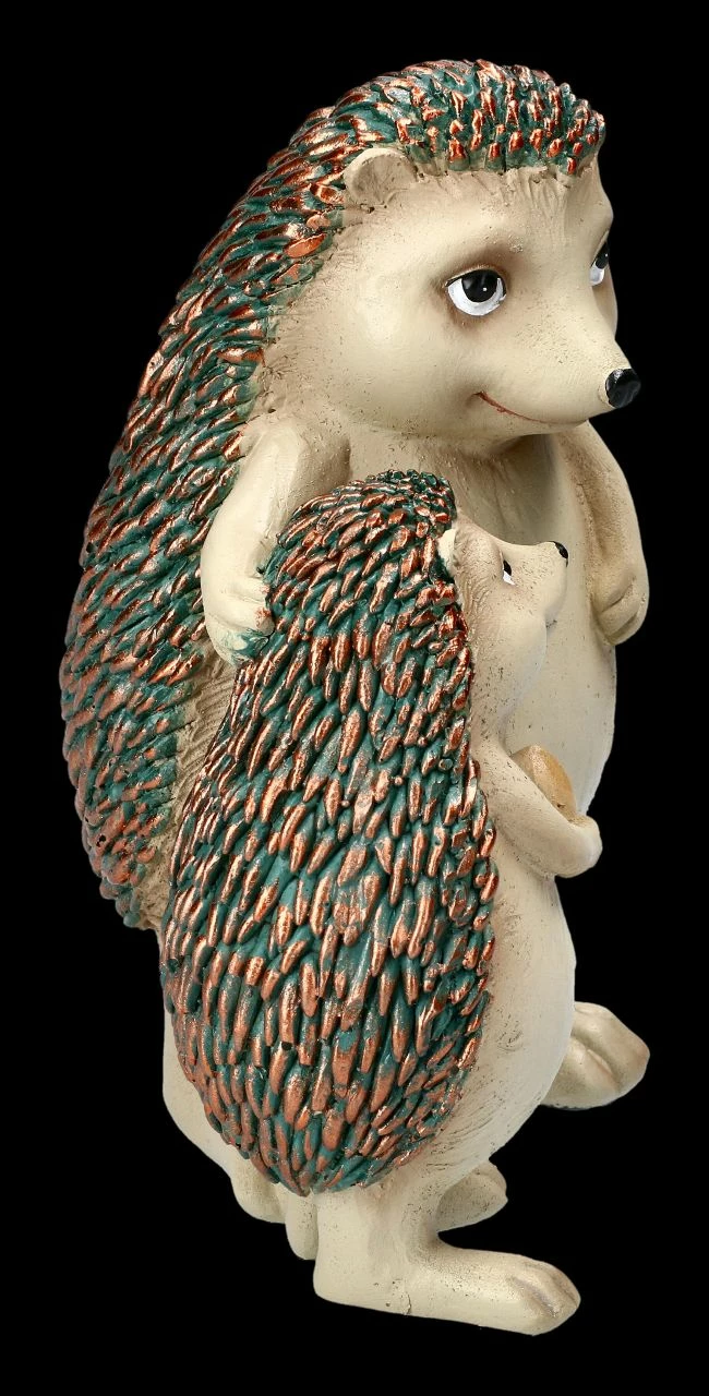 Liebevoll schützend legt der Igel seinen Arm um das Igelkind. Richtig niedlich, wie die beiden glücklich lächelnd da stehen. Die 19 cm hohe, 15 cm breite und 9 cm tiefe Igel Figur ist liebevoll und detailreich aus handbemaltem Kunststein (Polyresin) gefertigt. Die beiden sehen richtig süß aus und freuen sich auf ein Plätzchen zwischen den Blumen auf Ihrem Balkon oder der Blumenbank. Die putzige Igelfigur ist aber auch ein tolles Geschenk für alle Igelfreunde.