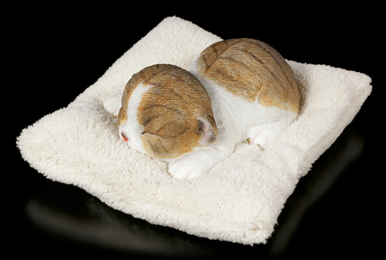Das kleine getigerte Kätzchen hat sich auf das flauschige Kissen gekuschelt. Haben Sie selber auch eine Katze? Dann wissen Sie wie sehr sie kuscheln lieben. Diese wundervolle handbemalte Kunststein Figur ist ein Must Have für alle Katzen Fans.