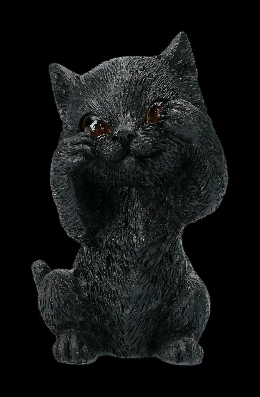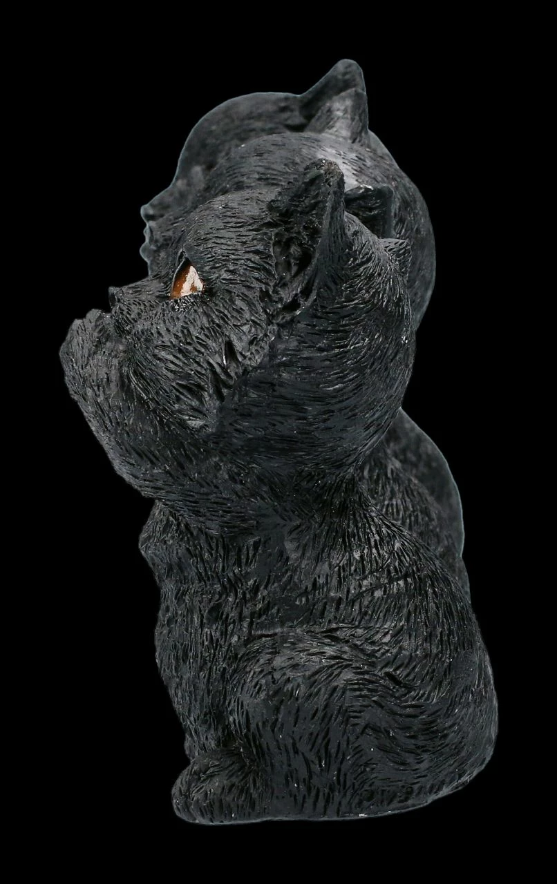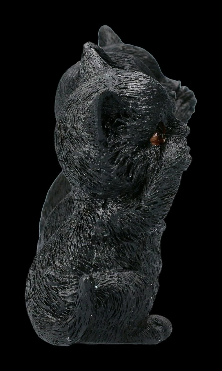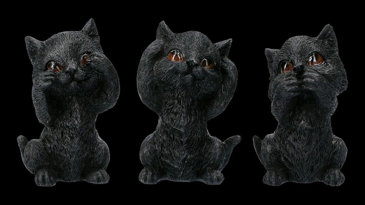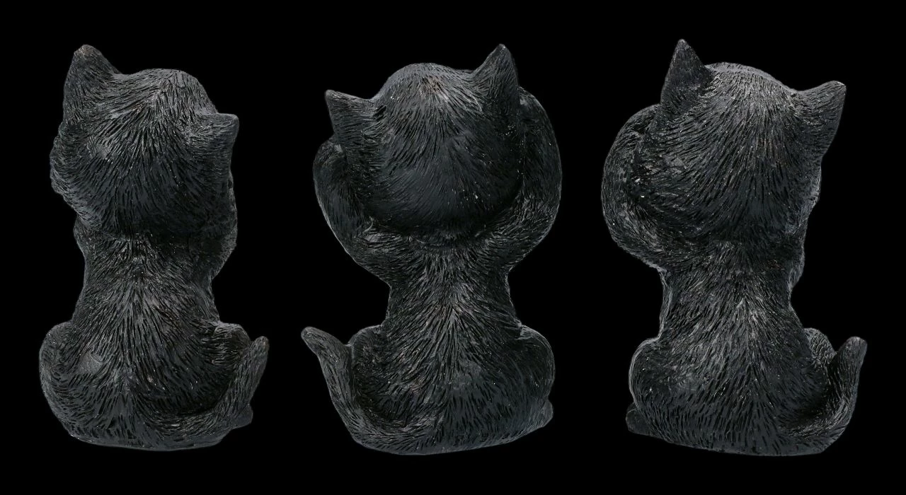 Früh üben sich scheinbar auch die drei kleinen schwarzen Katzenbabys bereits in den Regeln für gutes Benehmen und demonstrieren, dass sie nichts Böses hören, sehen oder sagen wollen. Das niedlichen Kätzchen in dem Dreiergespann aus handbemaltem Kunststein (Polyresin) sind je 9 cm hoch, je 5 cm breit und je 4 cm tief. Die drei schwarzen Katzen Babys sind ein lustiges und vielsagendes Geschenk nicht nur für alle Katzenfreunde, sondern auch für alle Hexen unter uns..