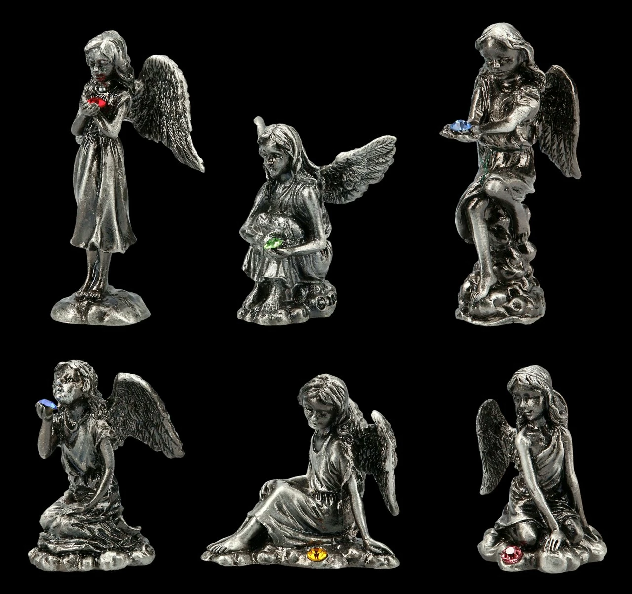 Das niedliche Engel Set aus Zinn ist ein tolles Geschenk für einen Engel Sammler. Die sechs kleinen Engel halten jeweils einen bunten Schmuck-Kristall in den Händen. Das Engel Set ist aus dem Hause Veronese und gehört zur Studio Collection. Auch als kleines Glücksbringer-Geschenk für liebe Freunde oder zum Befüllen eines Adventskalenders sind die Engel perfekt.