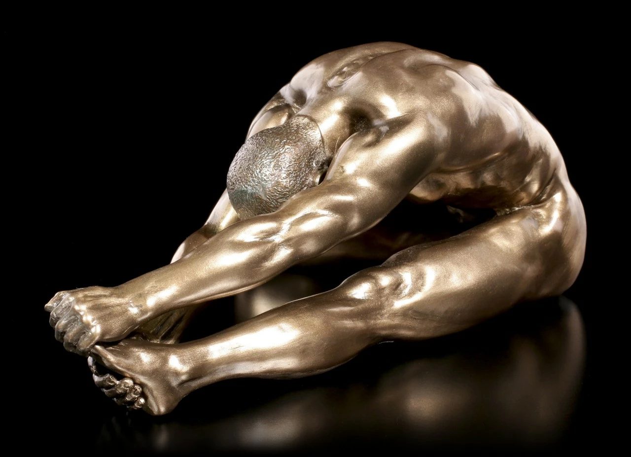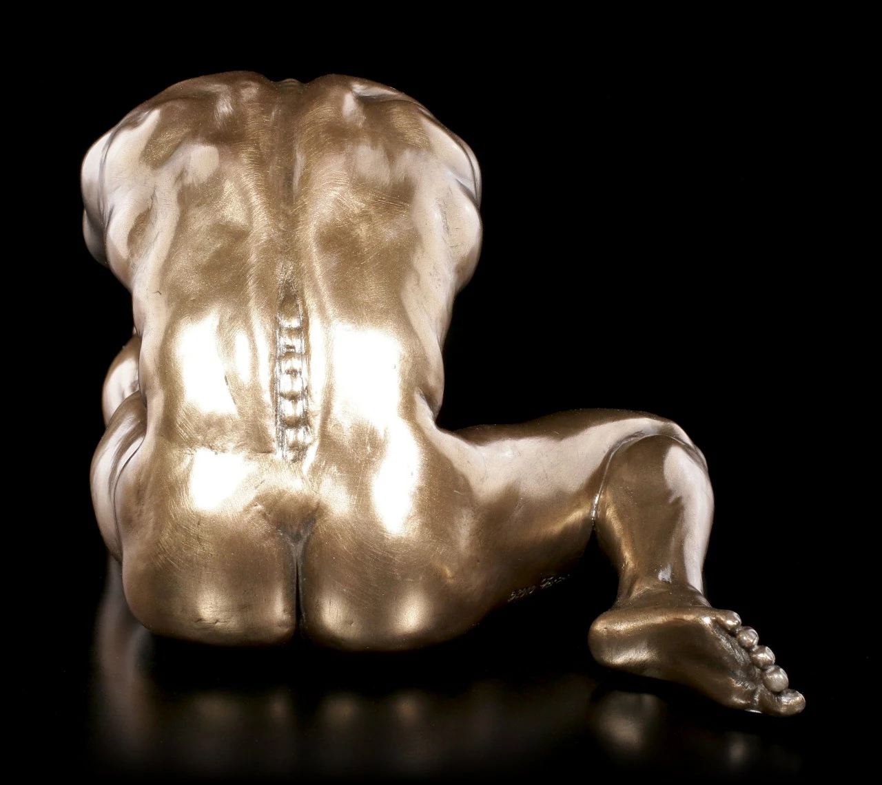 Dieser männliche Akt lässt uns bei seinen sinnlichen Dehnungsübungen teilhaben. Sein muskulöser Körper kommt anmutig zur Geltung und durch die Bronzierung wird die Figur von Veronese zu einem attraktiven Kunstwerk.