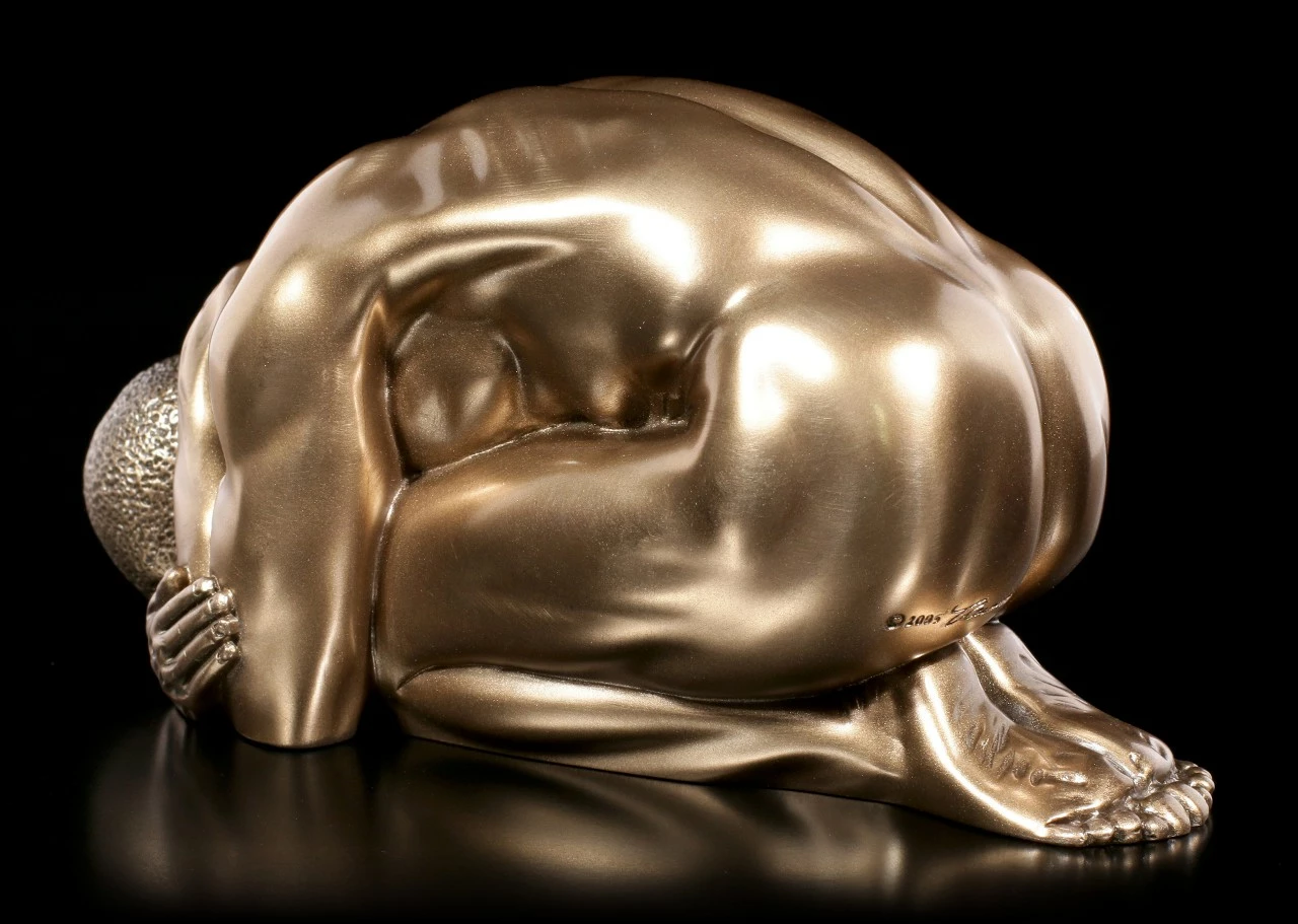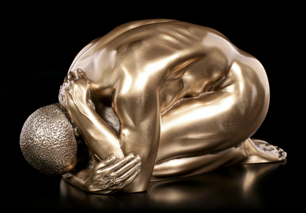 Mit Anmut und Sinnlichkeit kniet der attraktive Mann auf dem Boden und bettet sein Kopf sanft in seine Hände. Damit zieht er sofort alle Blicke auf sich und so wird der männliche Akt zu einem schönen Blickfang.