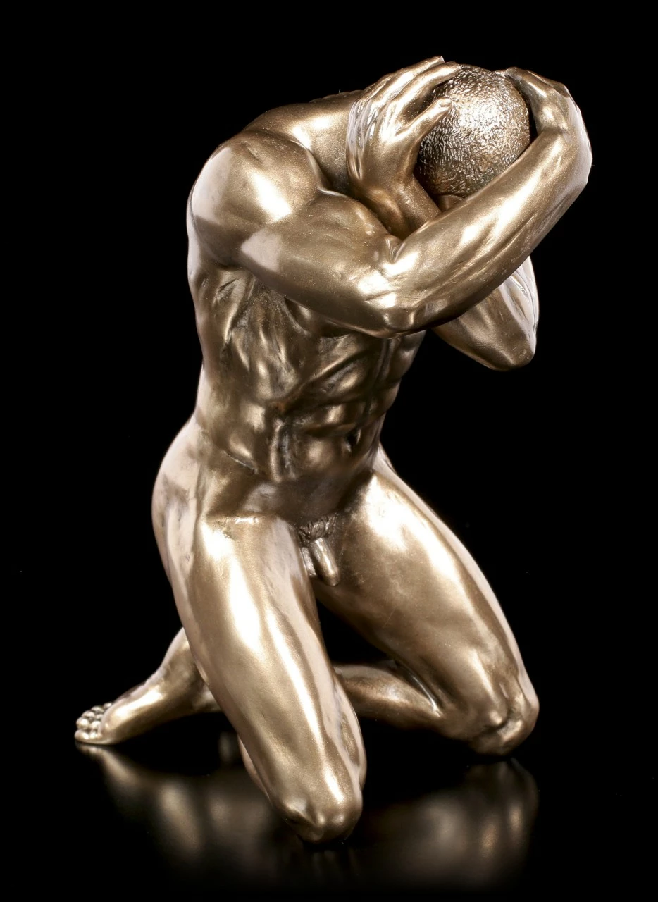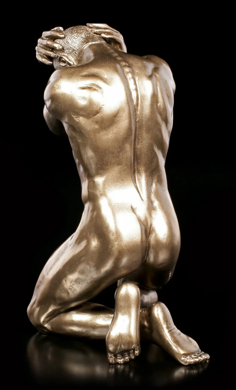 Der männliche Akt lässt keine Wünsche offen. Anmutig kniet der attraktive Mann auf dem Boden und verdeckt seinen Kopf dezent mit seinen Händen. So kommt sein sinnlicher Körper richtig zur Geltung.