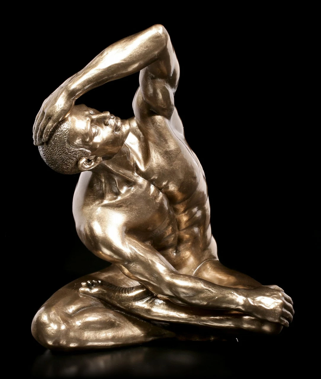 Dieser Mann ist sich seines sinnlichen Körpers voll bewusst und räkelt sich selbstbewusst für den Akt. Der männliche Akt von Veronese wird durch seine Bronzierung zu einem wahren Kunstwerk.