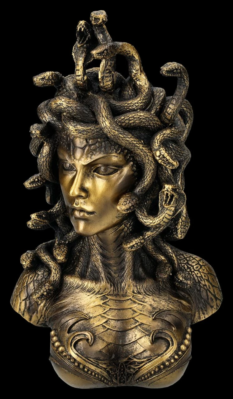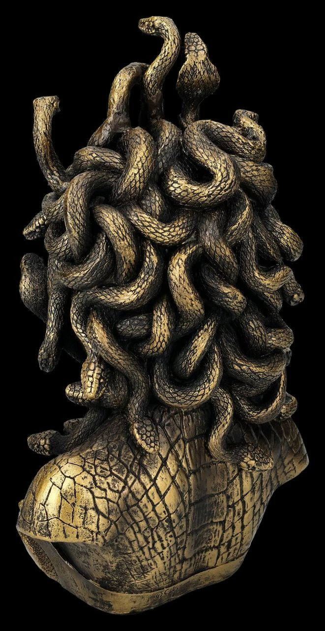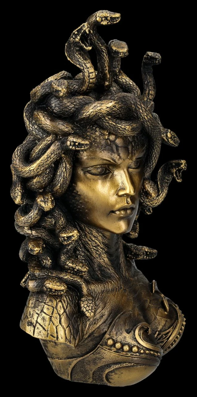 Mythos trifft Kunst: Die eindrucksvolle Medusa Büste in bronzefarbener Ausführung