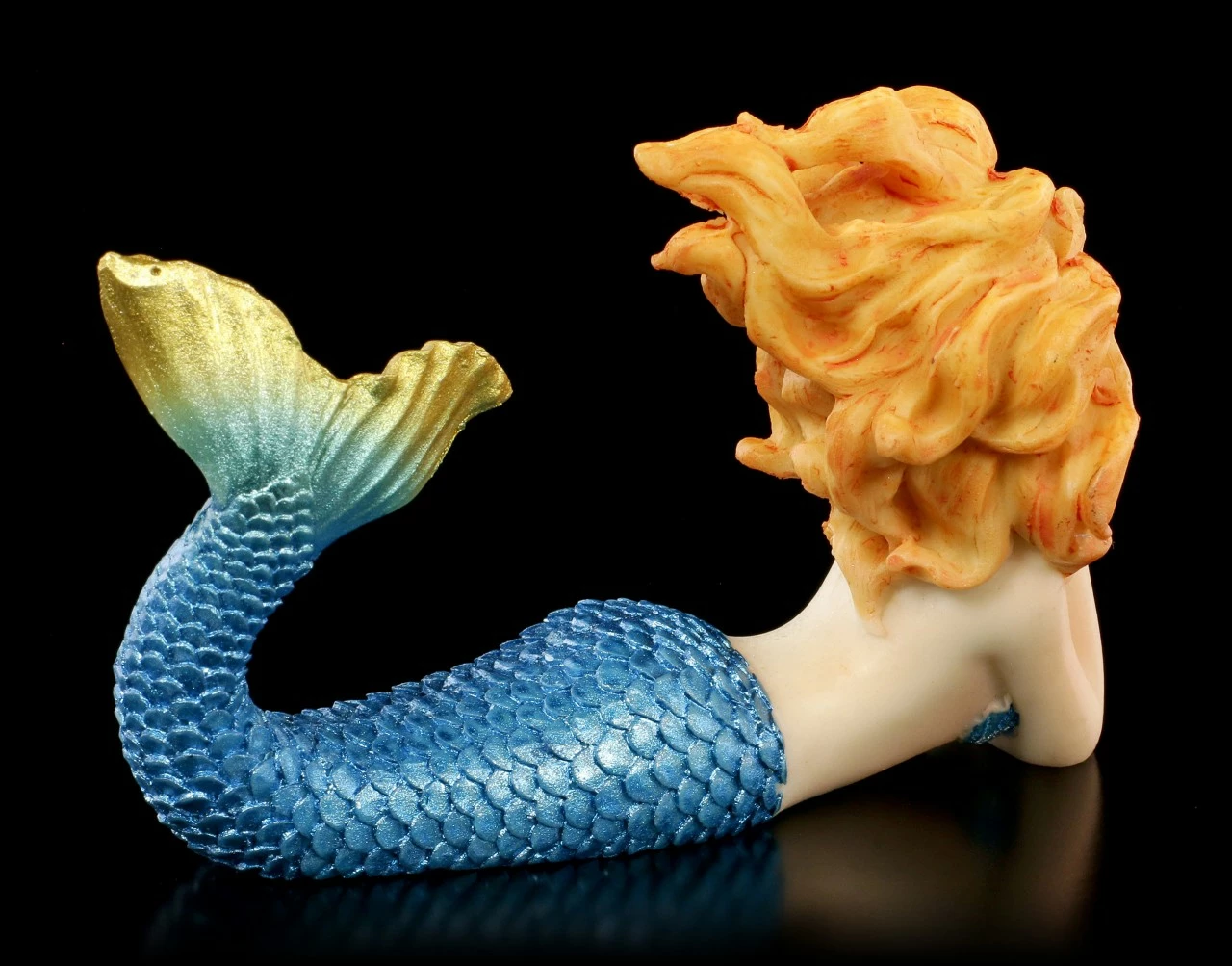 Die kleine Luana wartet am Meeresgrund liegend auf ihre Freunde. Ihre schönen Haare scheinen in der Meeresströmung zu wehen. Die Figur wurde liebevoll handbemalt und ausgearbeitet.