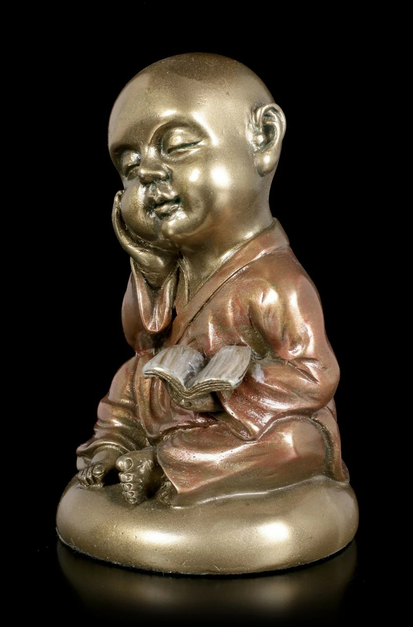 Der buddhistische Mönch ist mitten beim Lesen der heiligen Schriften eingeschlafen. Ein sanftes Lächeln umspielt seinen Mund und deutet darauf hin, dass es ein ausgesprochen schöner Traum sein muss. Die bronzierte und colorierte Figur aus Kunststein (Polyresin) strahlt eine besinnliche Ruhe aus. Lassen Sie Ihren Schlaf von dieser tollen Mönch Figur bewachen.