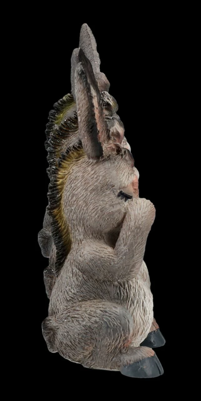Soll das nun heißen, dass ich ein Esel bin, wenn ich nichts Böses hören, sehen oder sagen möchte, oder dass auch Esel so schlau sind? Wer diese drei lustigen Esel-Figuren aus handbemaltem Kunststein (Polyresin) auf Ihrem Schsreibtisch oder im Regal entdeckt, wird sich sicher diese Frage stellen. Die 9.5 – 11,5 cm hohen, 6,5 cm breiten und 4,5 – 5 cm tiefen Eselsfiguren von Nemesis Now aus Kunststein (Polyresin) sind liebevoll handbemalt. Die drei können durchaus auch ein vielsagendes Geschenk sein.