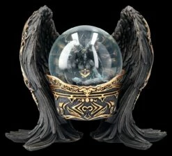 Riesige schwarze Flügel mit goldenen Akzenten umfassen diese grandiose Schneekugel. In der auf einem barock anmutenden schwarz-goldenen Podest stehenden Glaskugel sitzt majestätisch der dunkle Lord. Der rechte Arm Baphomets ist mit dem magischen Segen nach oben gestreckt, während der linke Arm nach unten zeigt. Die okkulte Darstellung des Sabbatical Goat ist ein Schmuckstück auf jedem Altartisch. Baphomet Antiquity mit Flügeln nennt Nemesis Now diese magische Schneekugel aus handbemaltem Kunststein (Polyresin) und Glas. Sie ist 19 cm hoch, 22,5 cm breit und 14 cm tief und kommt mit einem toll bedruckten Geschenkkarton.