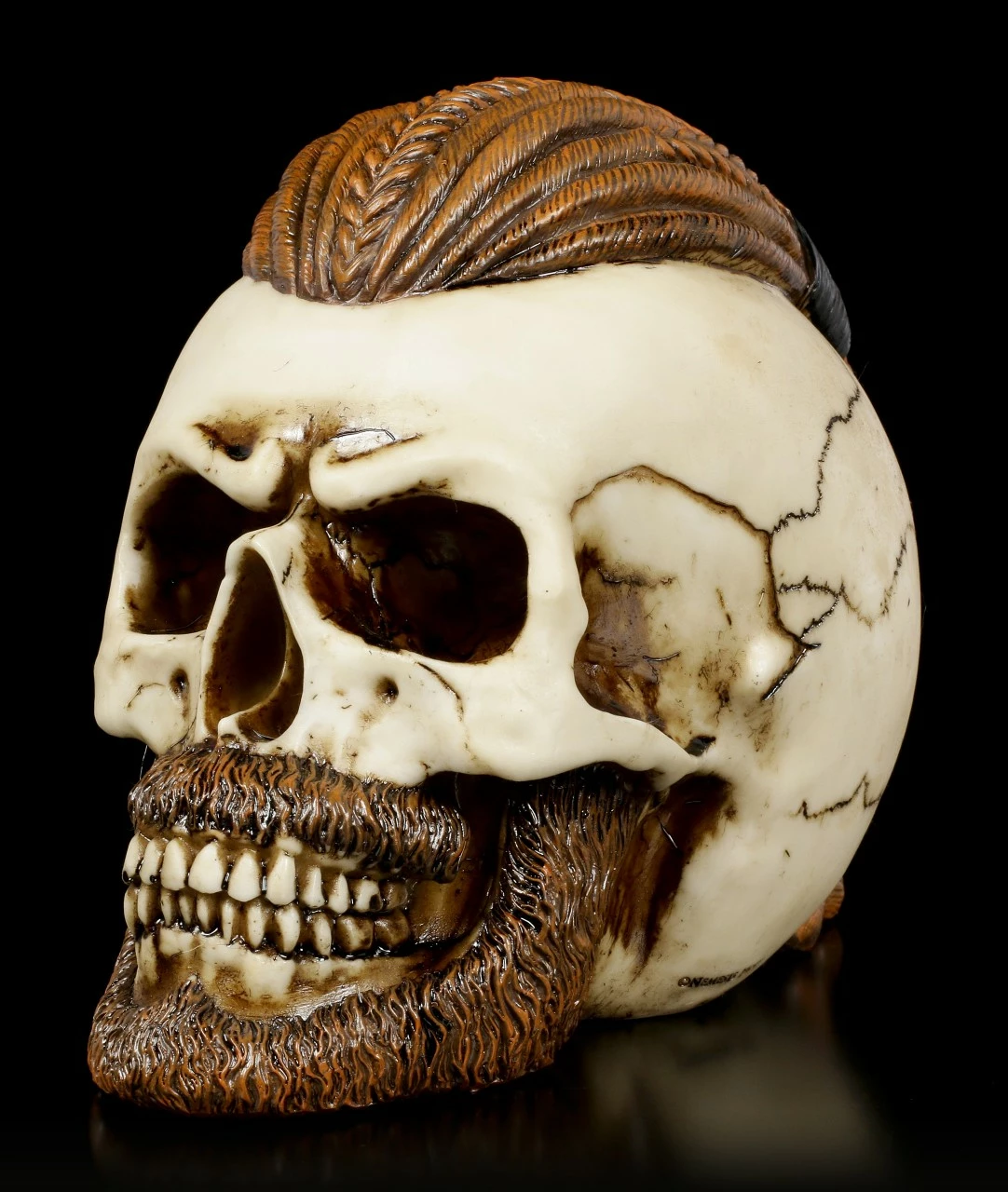 Die Haare zu einem kunstvollen Zopf geflochten, die Schädeldecke mit Wikingerrunen verziert – der handbemalte Totenkopf Ragna aus Kunststein (Polyresin) ist für alle Fans der Wikinger Mythologie das perfekte Geschenk.