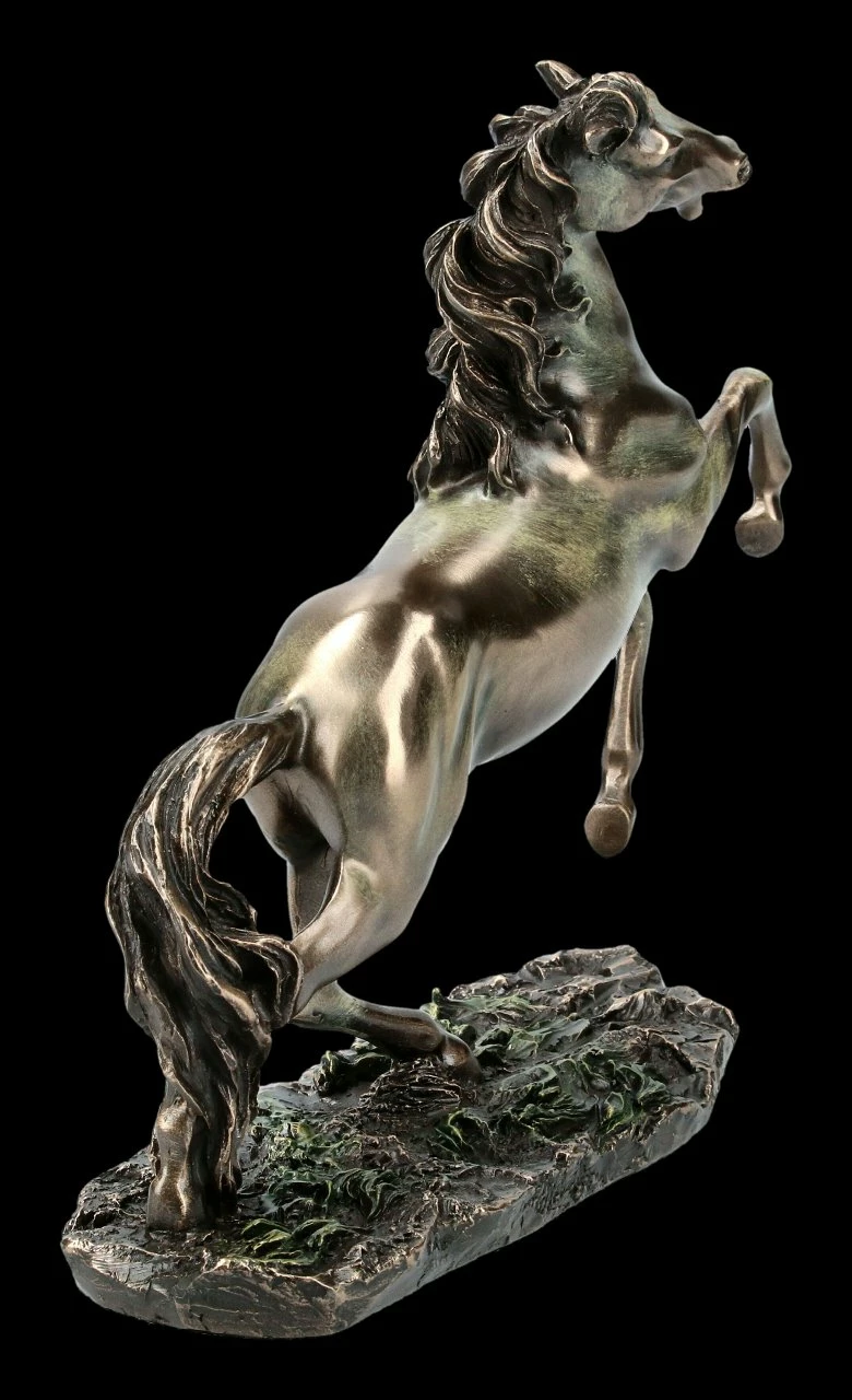 Diese edel bronzierte und colorierte Pferdeskulptur aus der Studio Collection von Veronese strahlt in seiner Darstellung die ganze Kraft eines scheuenden Pferdes aus. Das steigende Pferd ist sorgsam aus Kunststein (Polyresin) gefertigt. Es hat eine Höhe von 15,5 cm, eine Breite von 16,5 cm und eine Tiefe von 5,5 cm. Dieses schöne Pferd macht auf jedem Schreibtisch, der Fensterbank oder im Regal eine gute Figur. Es ist ein wunderbares Geschenk für alle Pferdefreunde.