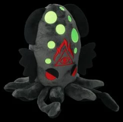 Ist diese schwarze Gothic-Krake mit den grünen Punkten aus den Tiefen des Meeres aufgetaucht? Dafür ist sie aber sehr kuschelig.und man kann sie auch streicheln. Aber vorsichtig soll man trotzdem sein, denn an dem roten Mal auf der Brust und den blutroten Augen kann man auch sehen, dass die Krake zum geheimnisvollen Club der Gothic-Kuscheltiere gehört. Das dritte Auge in dem Zeichen beweist, dass sie vermutlich den Blick für die Zwischenwelt hat. Das putzige Plüschtier aus kuschelig weichem 100 % Polyester ist 18,5 cm hoch, 21 cm breit und 27 cm tief. Für Babies und Kleinkinder ist die lustige Gothic-Krake nicht geeignet, aber wer sagt denn, dass nur Kinder Kuscheltiere haben dürfen…. Mit den anderen Kuscheltieren aus dieser Reihe bildet die Gothic-Krake gleich eine tolle Gemeinschaft und ist das perfekte Geschenk zum Sammeln.