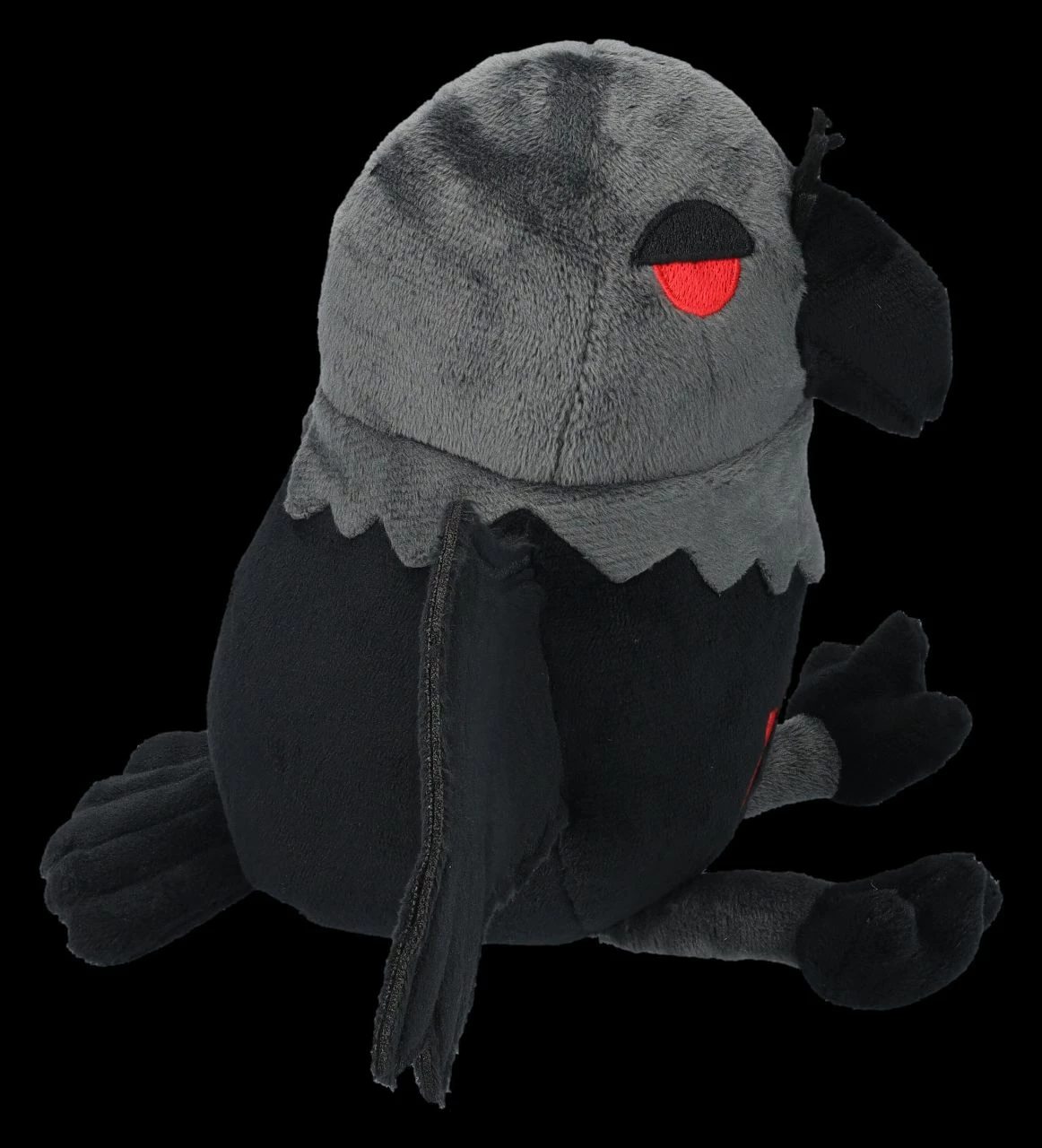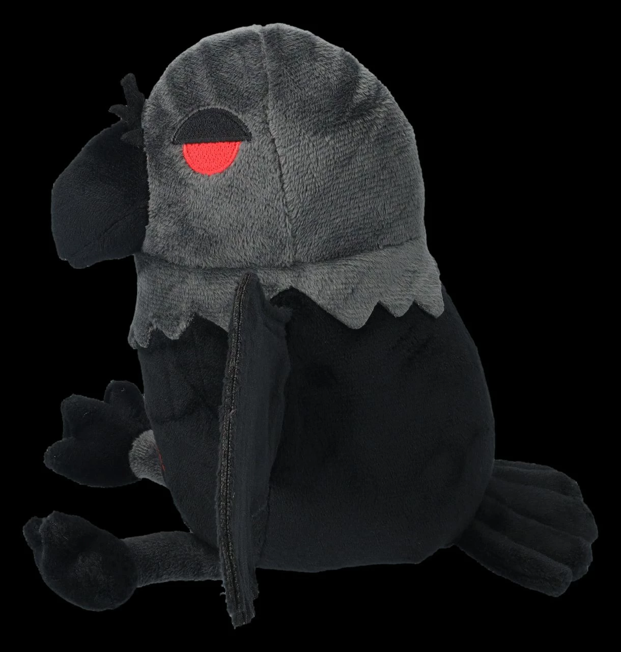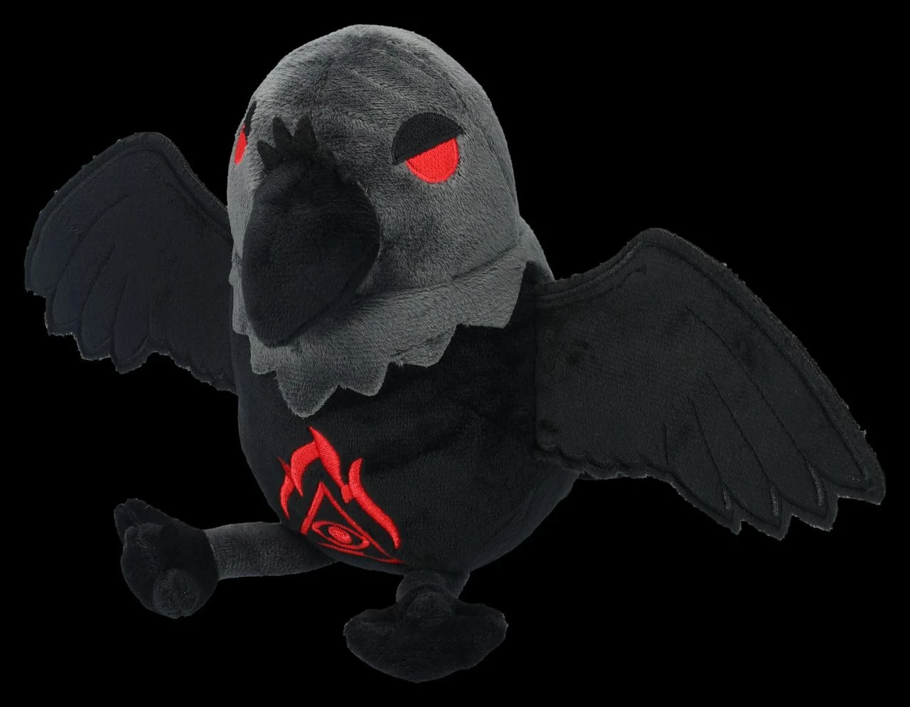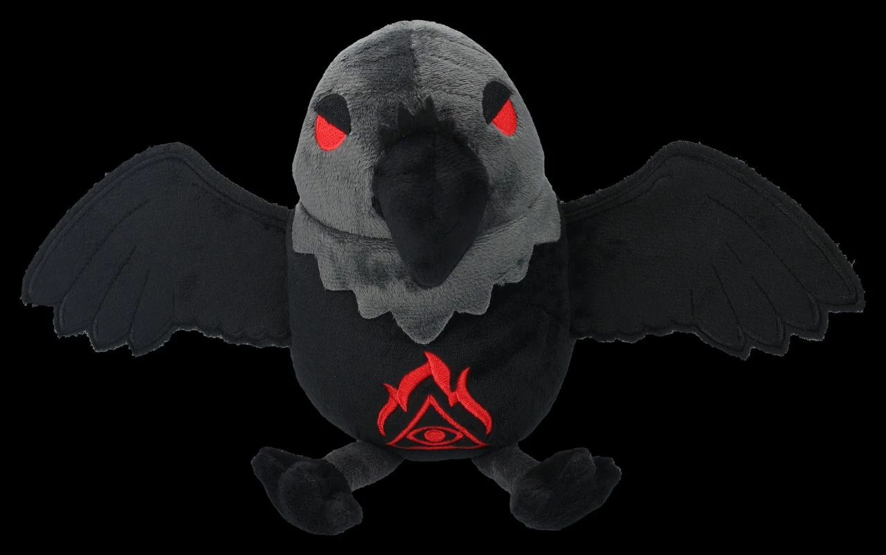 Seinen krächzenden Ruf wird dieser schwarze Rabe nur in ganz unbeobachteten Momenten hören lassen, aber streicheln darf man ihn jederzeit. Vorsicht ist dennoch geboten, denn an dem roten Mal auf der Brust und den blutroten Augen kann man auch sehen, dass der Rabe zum geheimnisvollen Club der Gothic-Kuscheltiere gehört. Das dritte Auge in dem Zeichen zeigt, dass er vermutlich den Blick für die Zwischenwelt hat. Das putzige Plüschtier aus kuschelig weichem 100 % Polyester ist 16 cm hoch, 30 cm breit und 14,5 cm tief. Für Babies und Kleinkinder ist der putzige Gothic-Rabe nicht geeignet, aber wer sagt denn, dass nur Kinder Kuscheltiere haben dürfen…. Mit den anderen Kuscheltieren aus dieser Reihe bildet er gleich eine tolle Gemeinschaft und ist das perfekte Geschenk zum Sammeln.